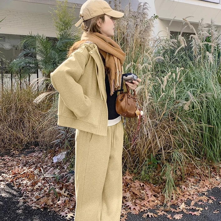 スウェットセットアップ レディース 韓国 ファッション ジップパーカー ワイドパンツ パステルパーカー ダブルジップ ジャケット 上下2点セット