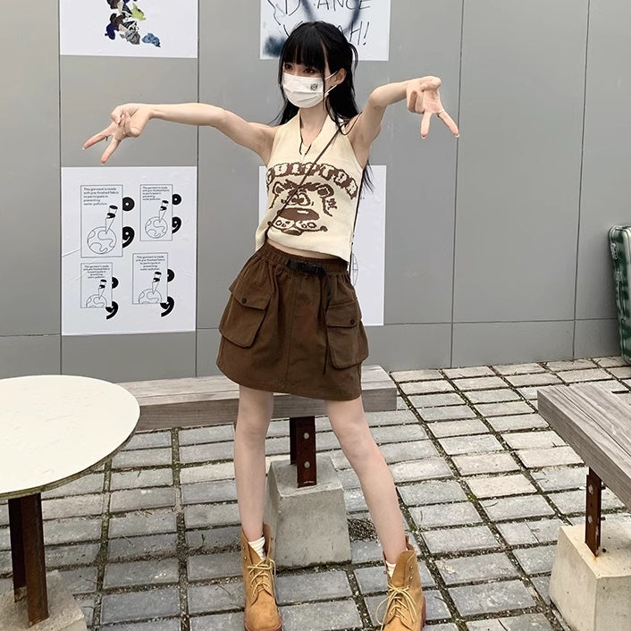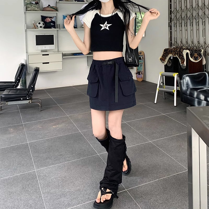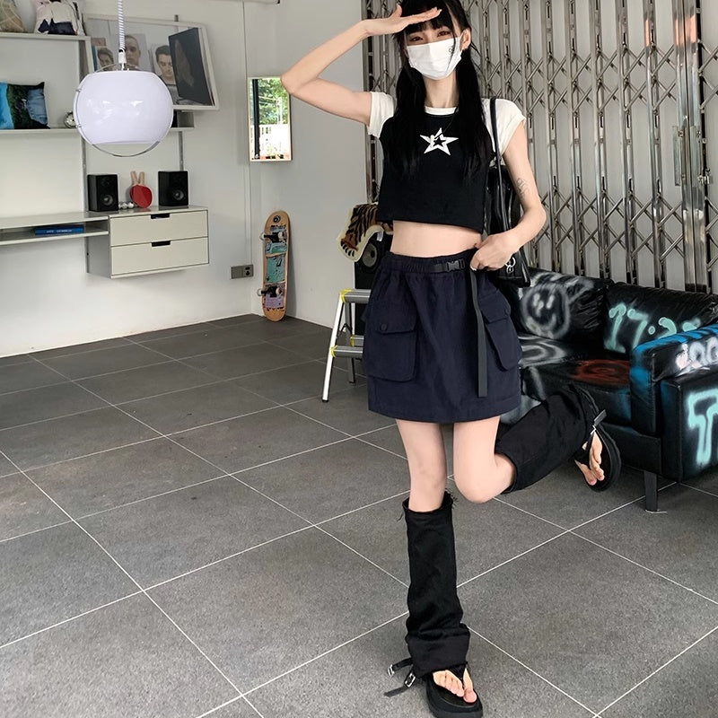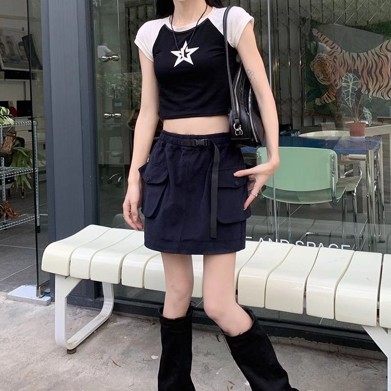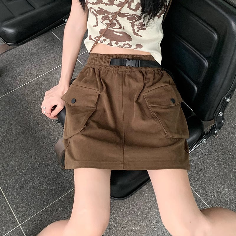 ミニスカート レディース 韓国 ファッション サイドポケット ミリタリー 台形スカート ミニマム シンプル ウエストゴム