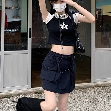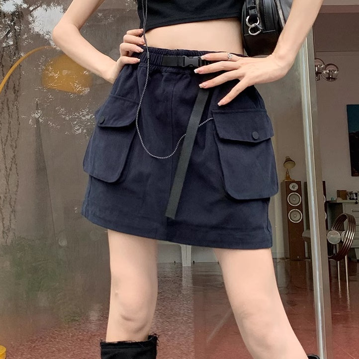 カーゴスカート ミニ レディース 韓国 ファッション サイドポケット カーゴミニ スカート ミリタリー ウエストゴム