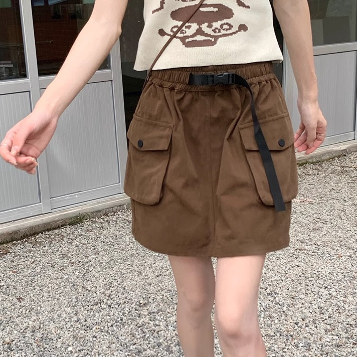 ミニスカート レディース 韓国 ファッション サイドポケット ミリタリー 台形スカート ミニマム シンプル ウエストゴム
