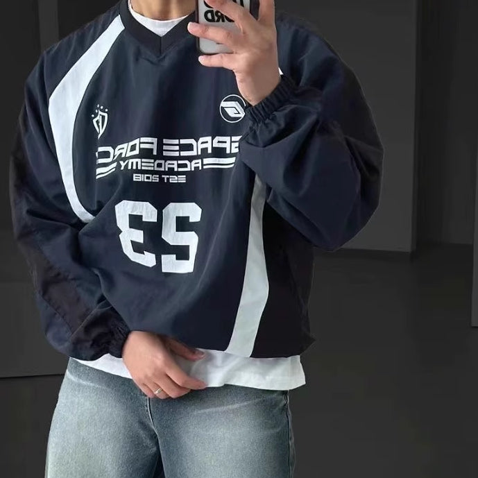 Tシャツ ナイロンシャツ レディース 韓国 ファッション プルオーバー 袖ライン ナンバーロゴ バイカラー コントラスト オーバーサイズ