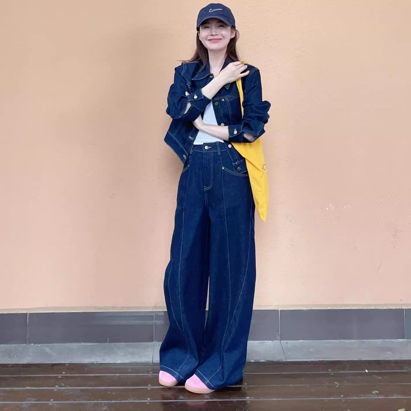 デニム セットアップ レディース 韓国 ファッション デニムジャケット デニムパンツ インディゴ ジーンズ ワイドパンツ
