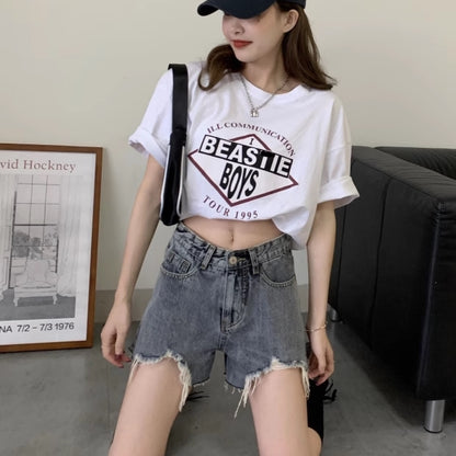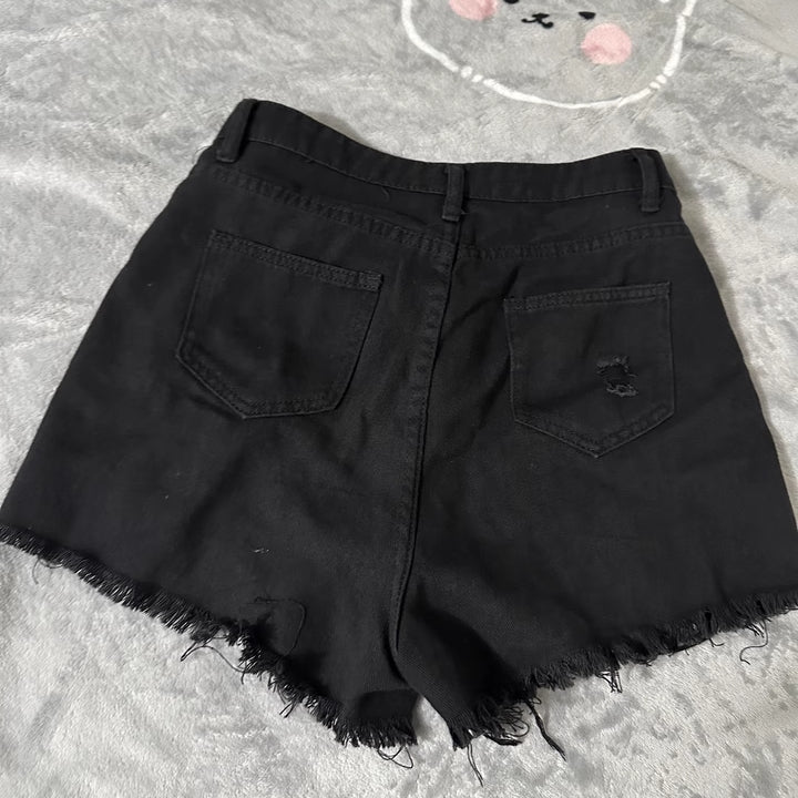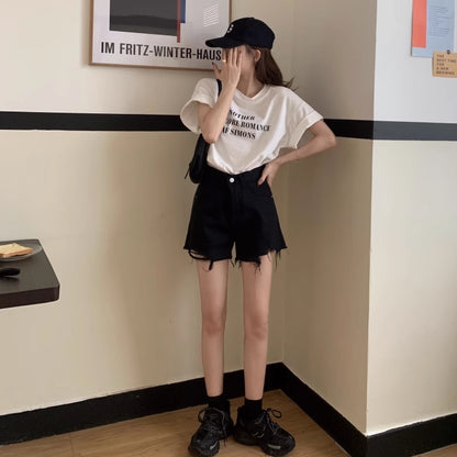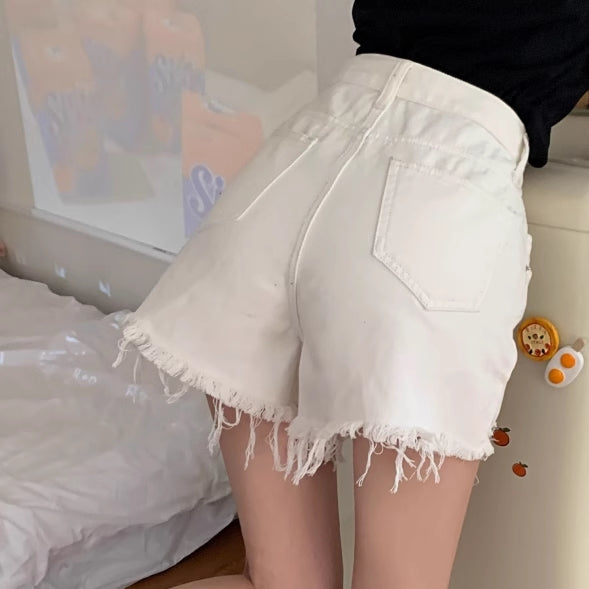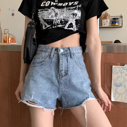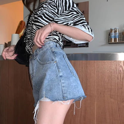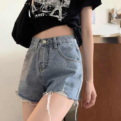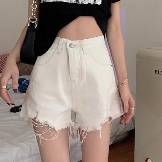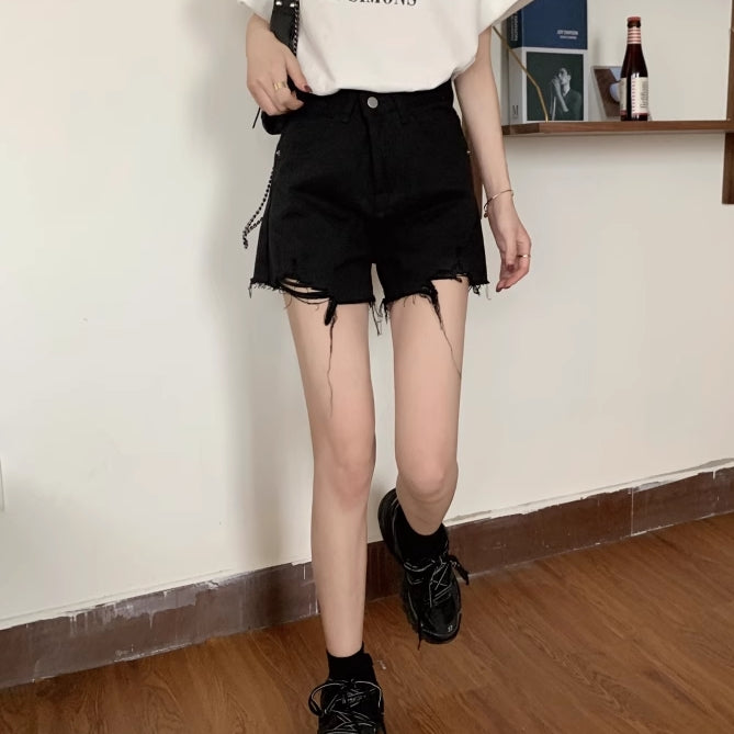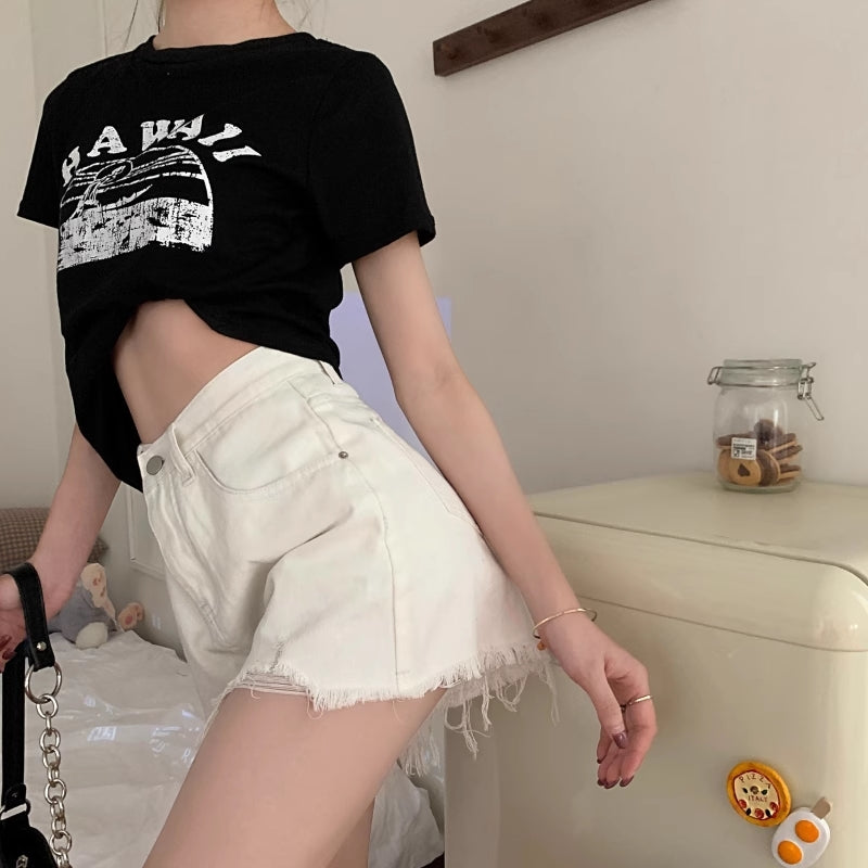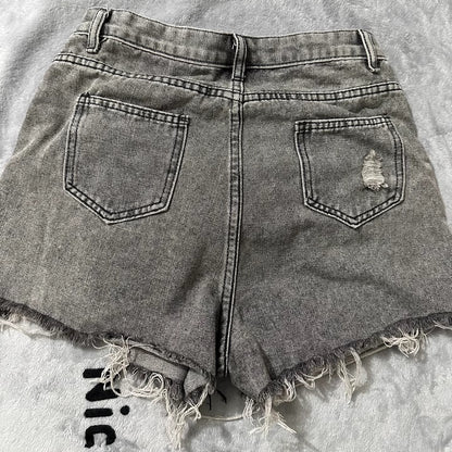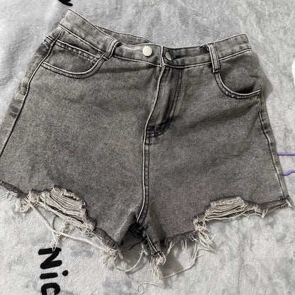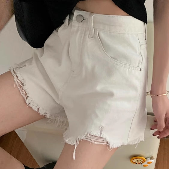 デニムショートパンツ レディース 韓国 ファッション クラッシュ加工 裾フレア アッシュカラー ダメージ加工