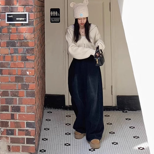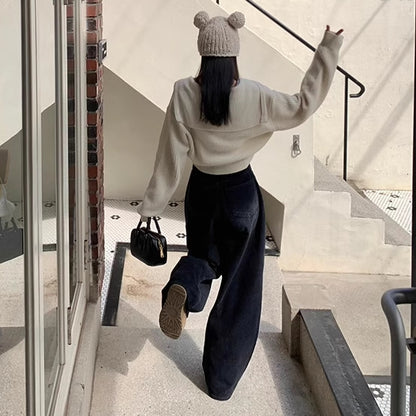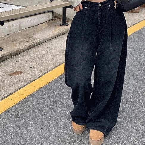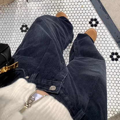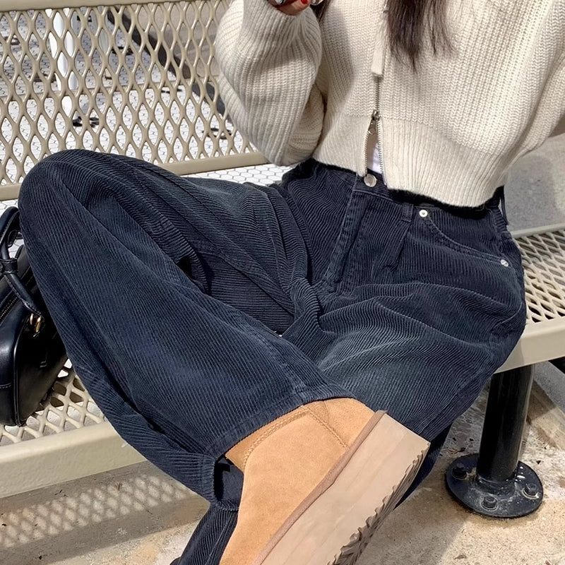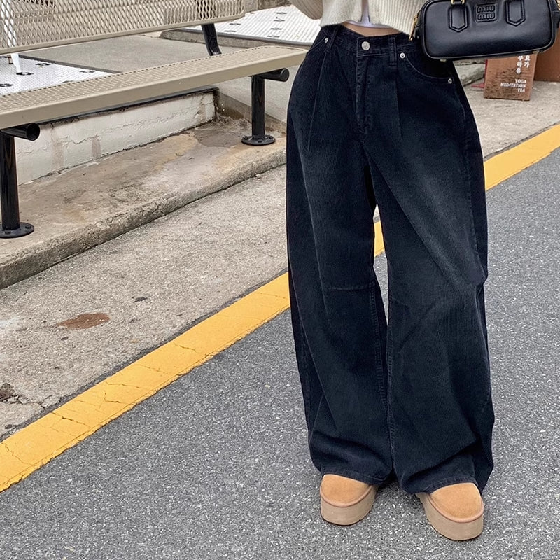 ヴィンテージ コーデュロイ ワイドパンツ 韓国 ファッション レディース タック ボリュームパンツ ユーズド加工