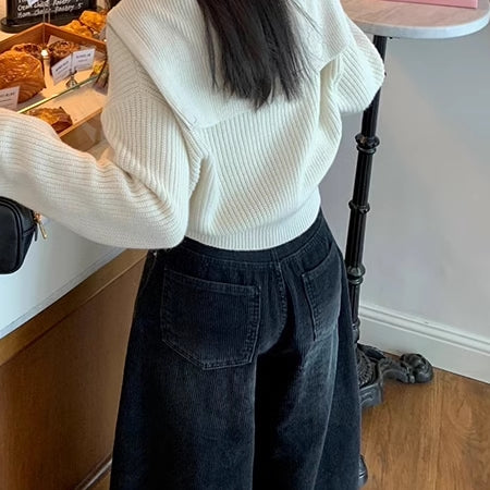 パンツ コーデュロイ レディース 韓国 ファッション タックワイドパンツ ブラック ボリューム