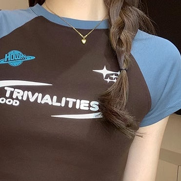 ラグラン クロップド Tシャツ レディース 韓国 ファッション スポーティー ロゴ リンガー T ショート丈