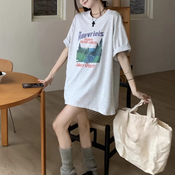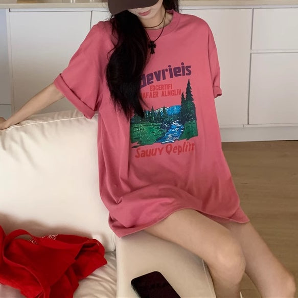 Tシャツ レディース プリント グラフィック T 韓国 ファッション 半袖 夏トップス ビッグシルエット