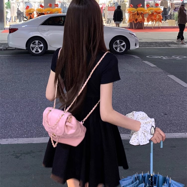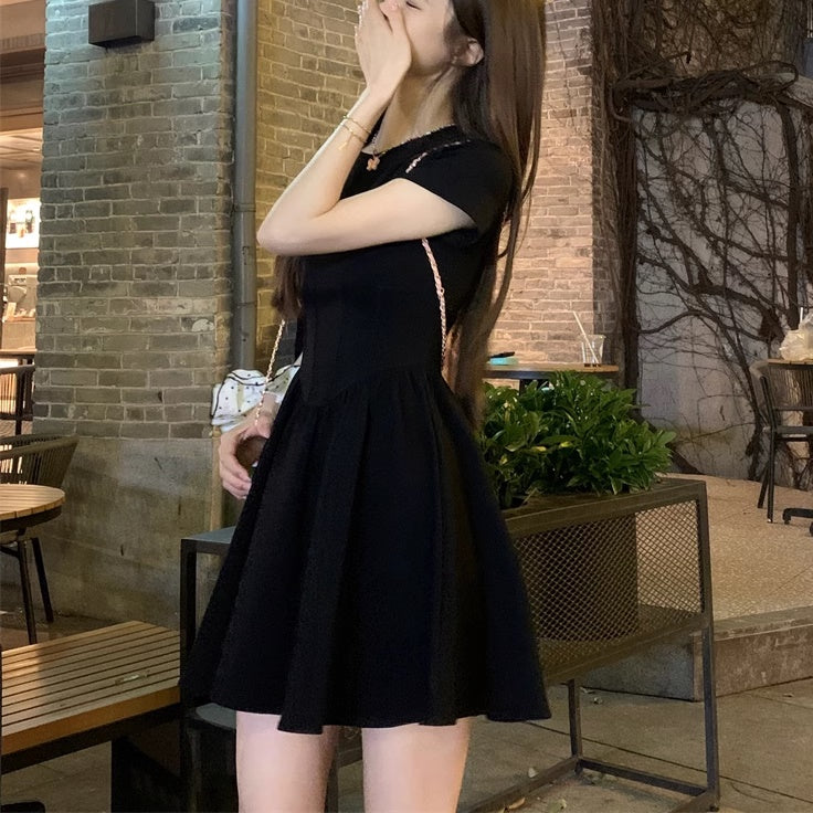ミニ フレア ワンピース レディース 韓国 ファッション 半袖 黒 ミニワンピ
