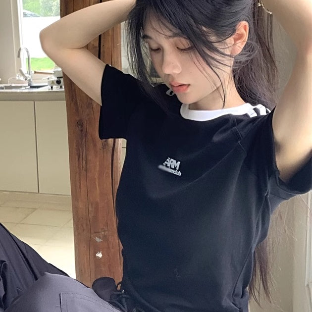 Tシャツ 半袖 レディース 韓国 ファッション クロップド ワンポイント ロゴマーク リンガーT