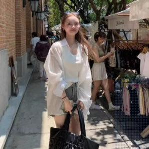 カバーアップ シャツ レディース 韓国 ファッション 夏 オーバーサイズ 薄手 長袖 白シャツ