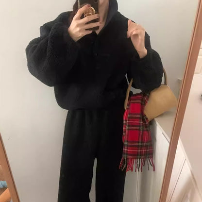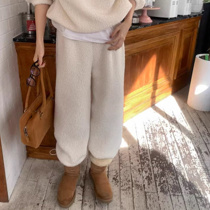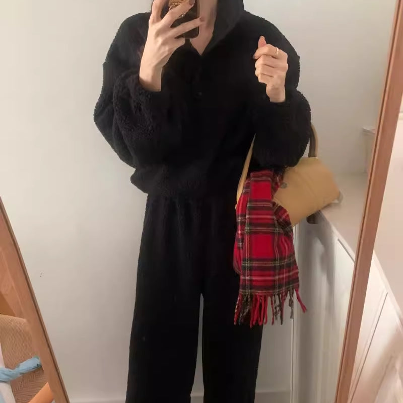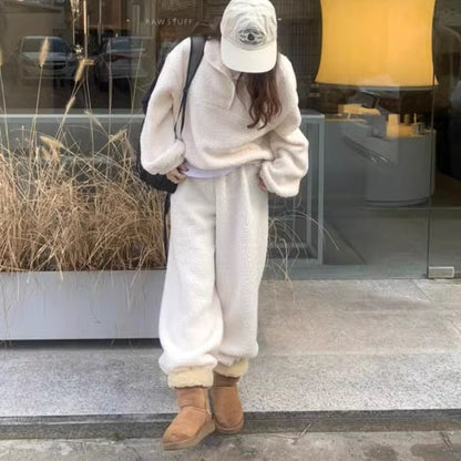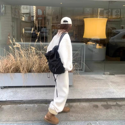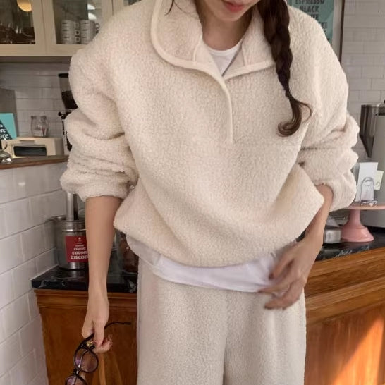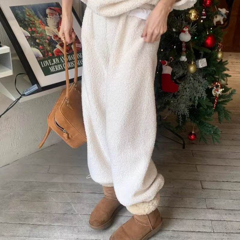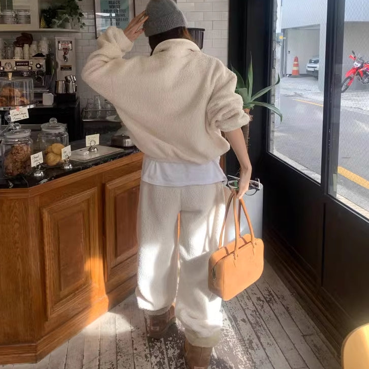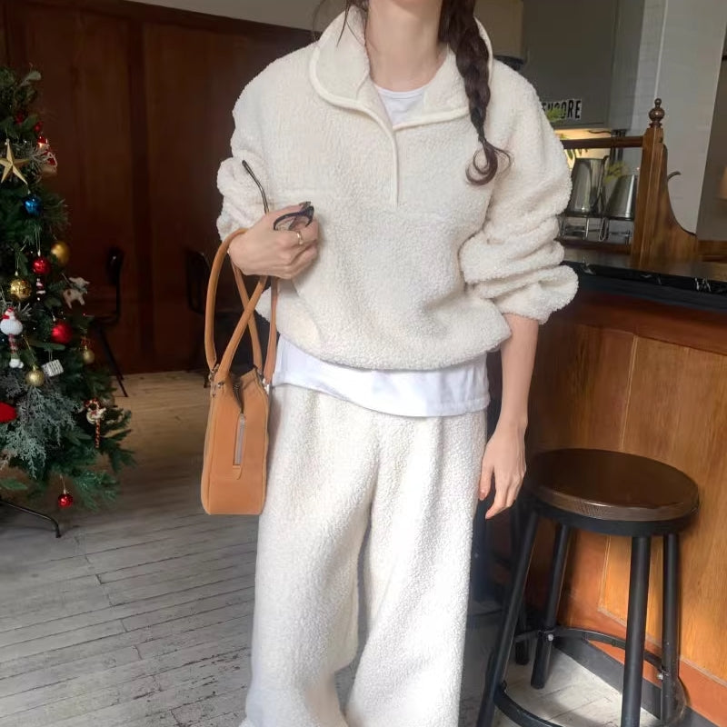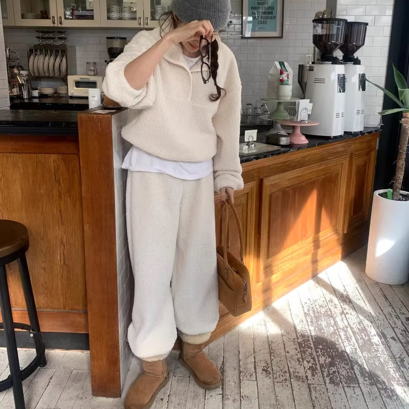 ボア フリース セットアップ レディース 韓国 ファッション 冬 オーバーサイズ ボア トップス パンツ 上下セット