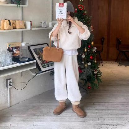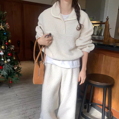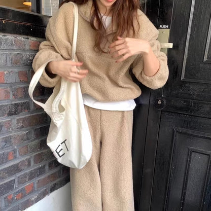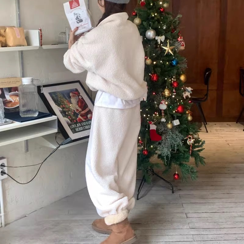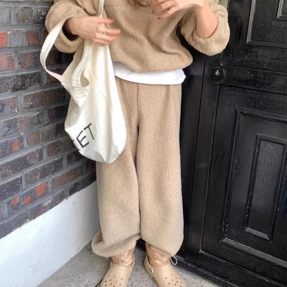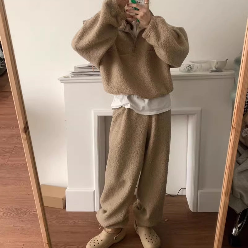 フリース セットアップ レディース 韓国 ファッション フリースパンツ プルオーバー 防寒トップス 冬 上下2点セット かわいい ベアー