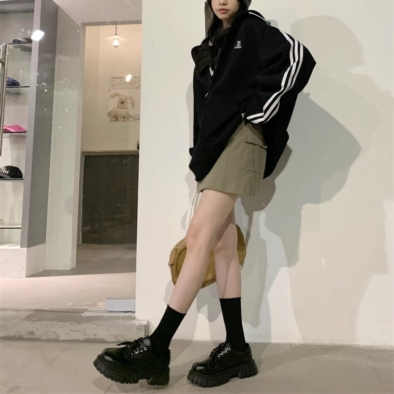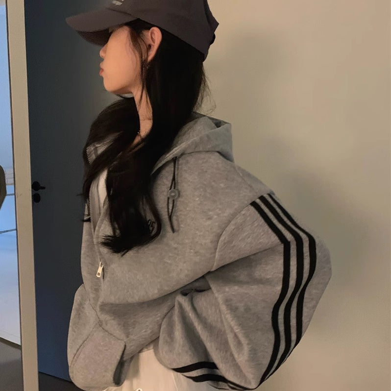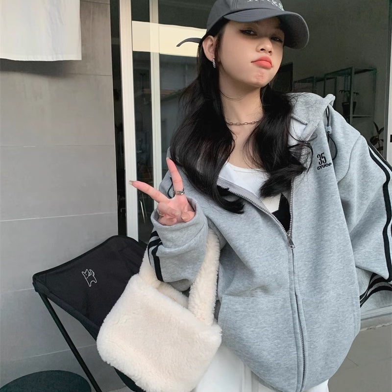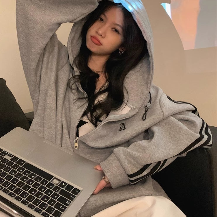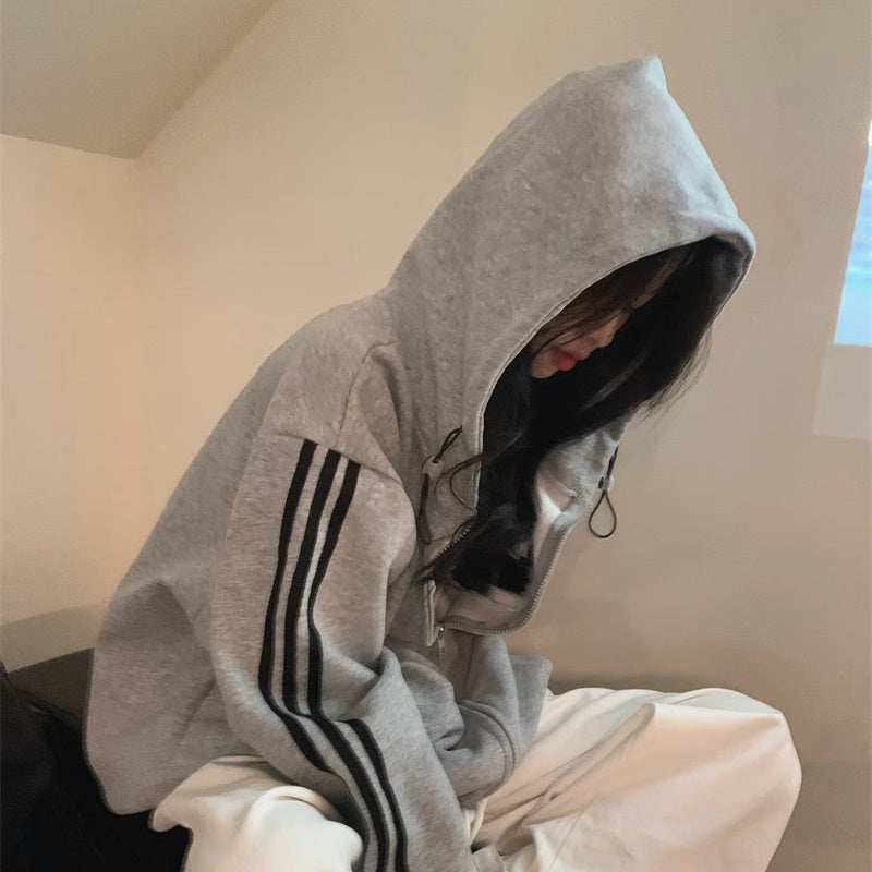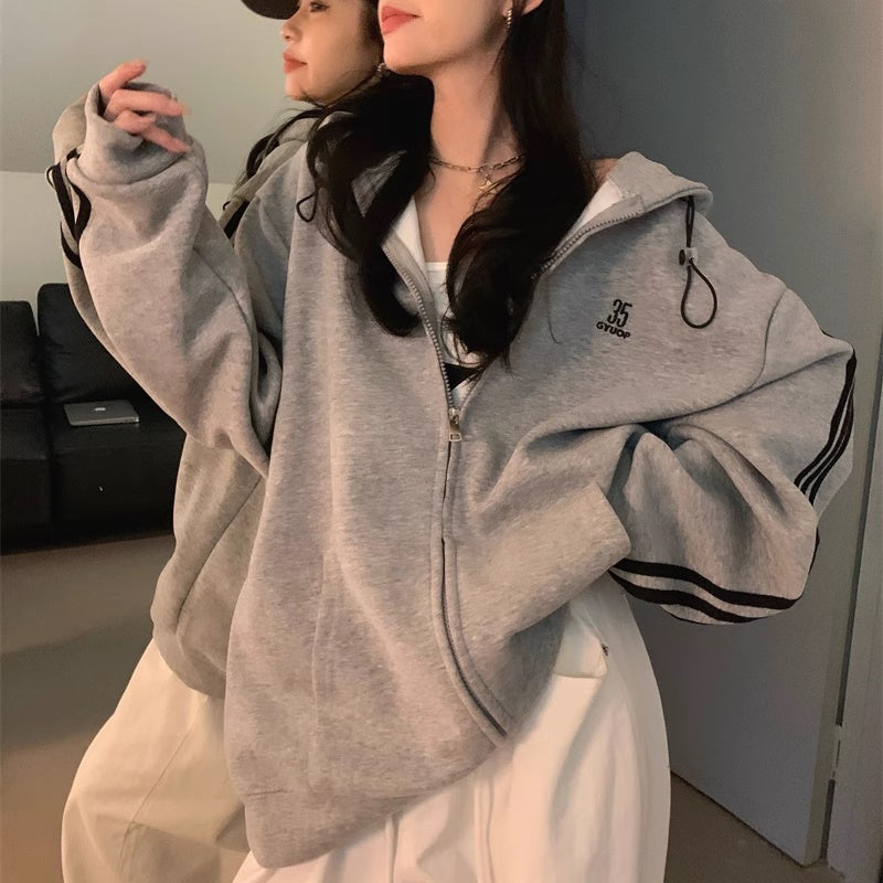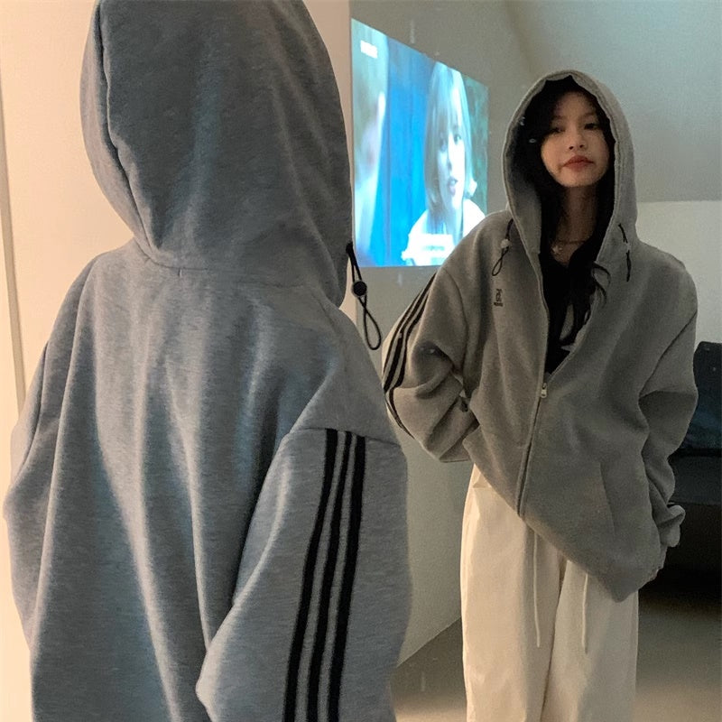 ライン パーカー レディース 韓国 ファッション ジップアップ オーバーサイズ スポーティ パーカー サイドライン ロゴ ワンポイント フーディー 秋冬 トップス