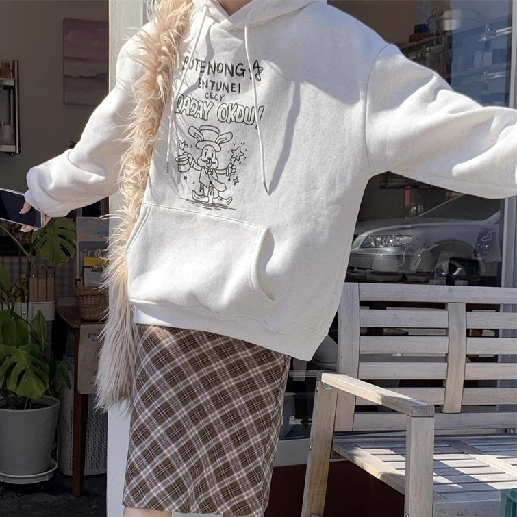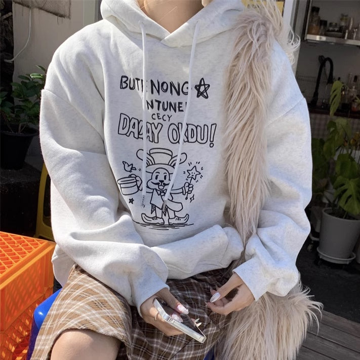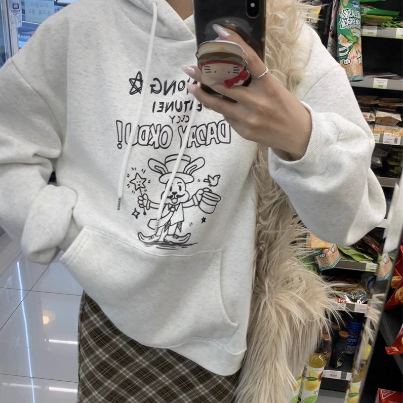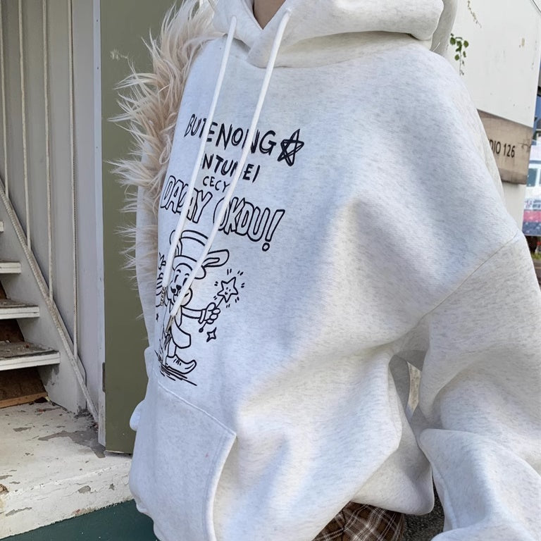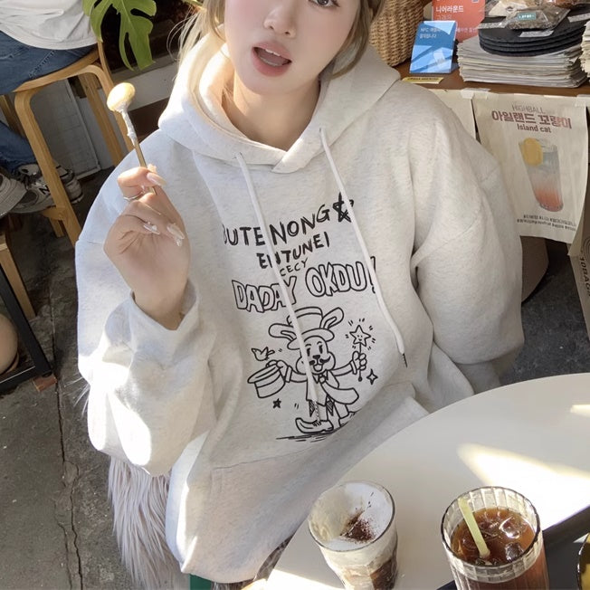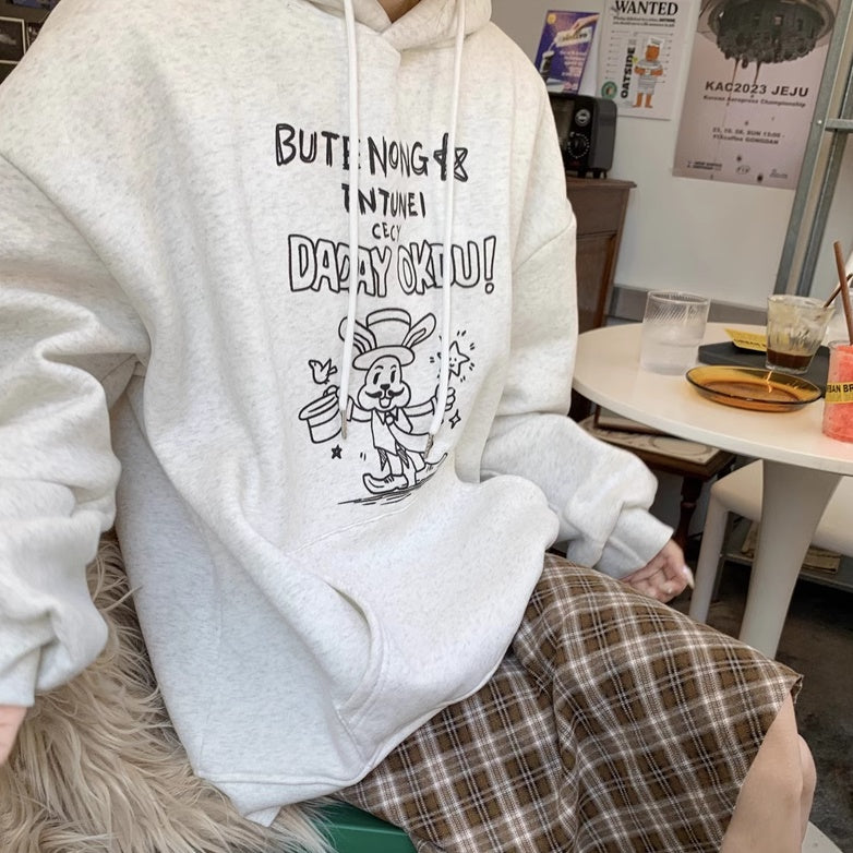 パーカースウェット レディース 韓国 ファッション プルオーバー ポケット ロゴ ラビット ウサギ アニマル イラスト