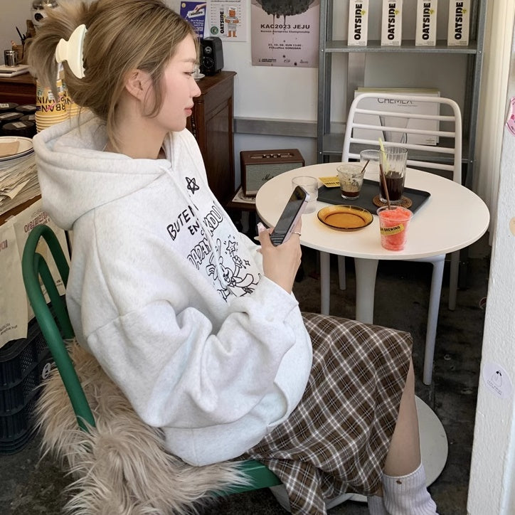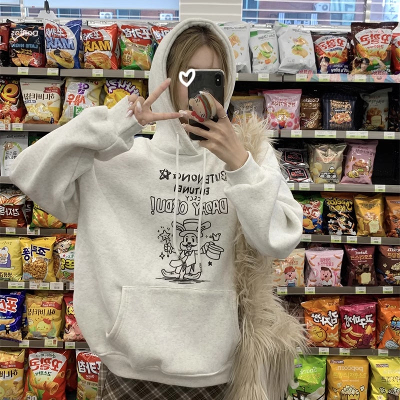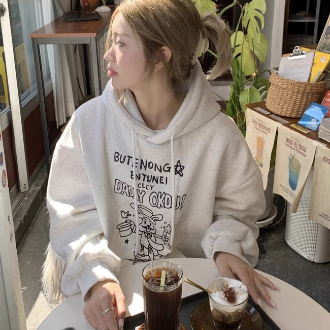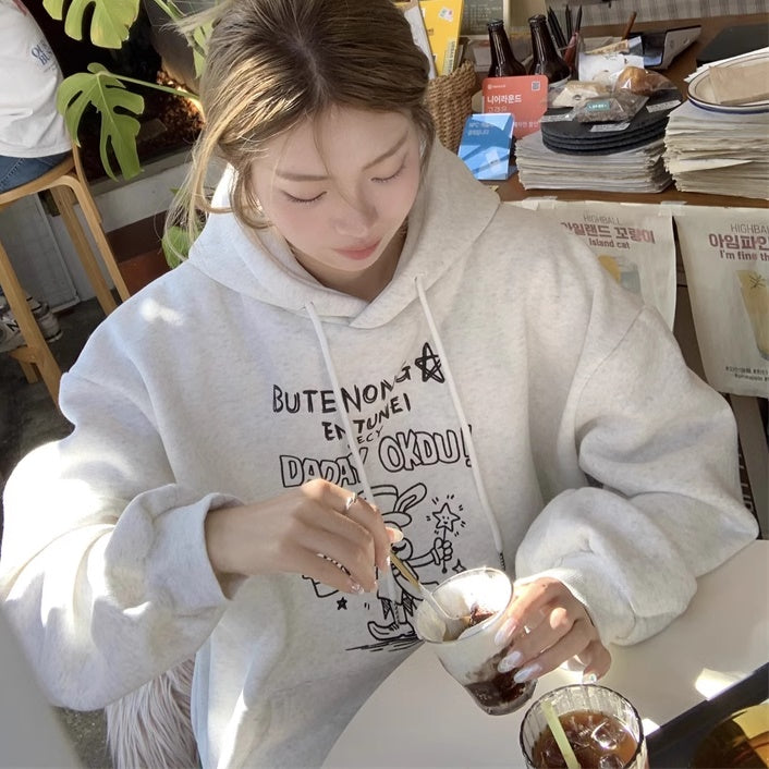 パーカー レディース 韓国 ファッション プルオーバー ロゴ イラスト オーバーサイズ フーディー