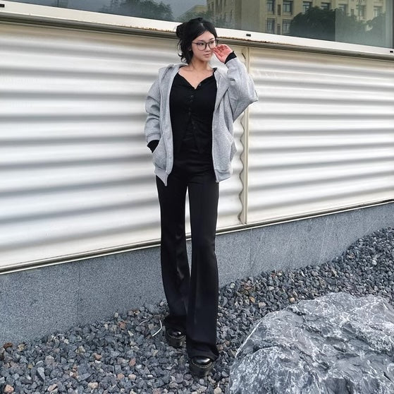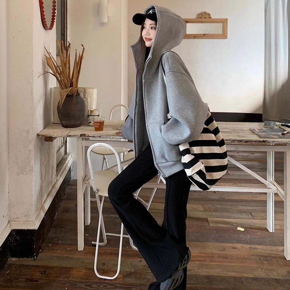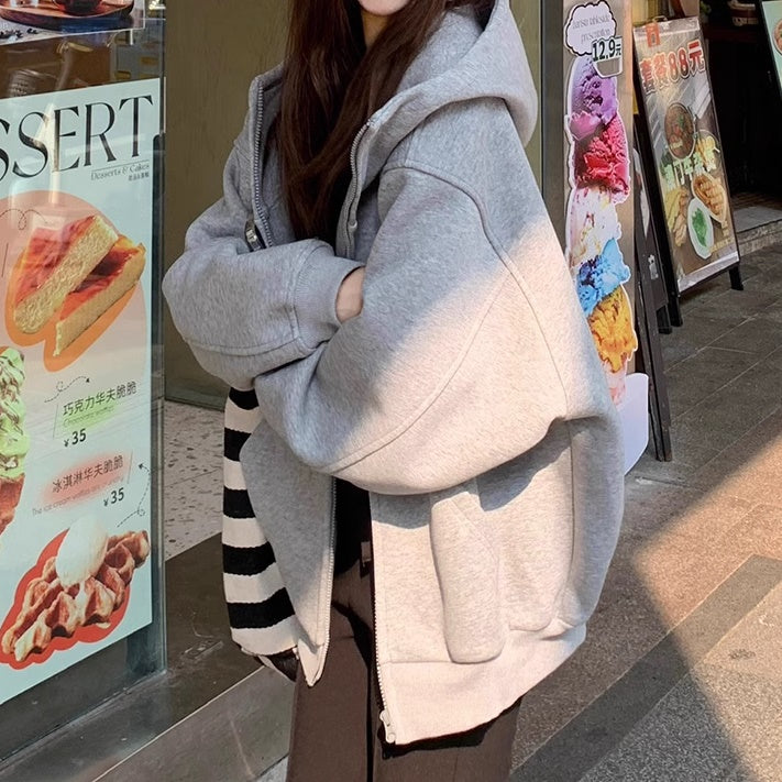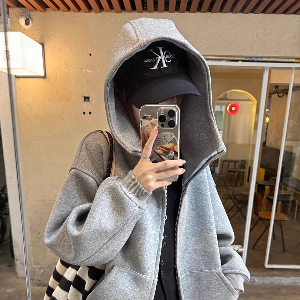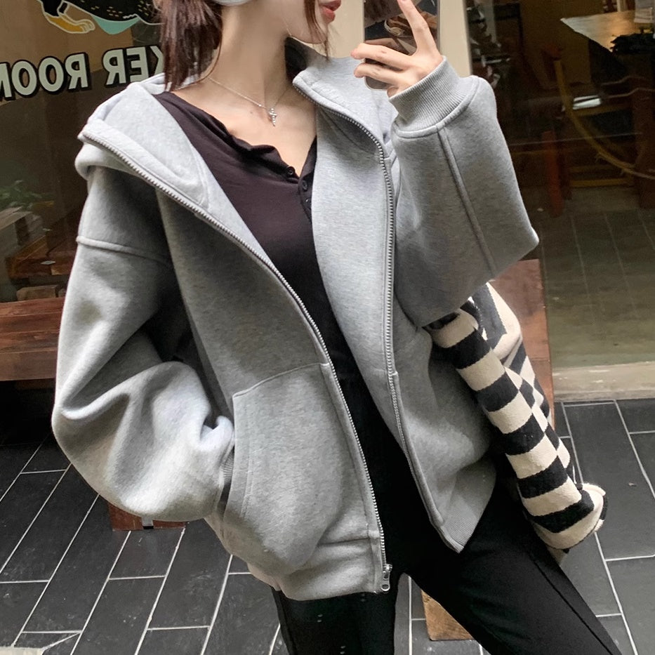 ジップ パーカー レディース 韓国 ファッション ジップアップ オーバサイズ スタンドネック フーディー