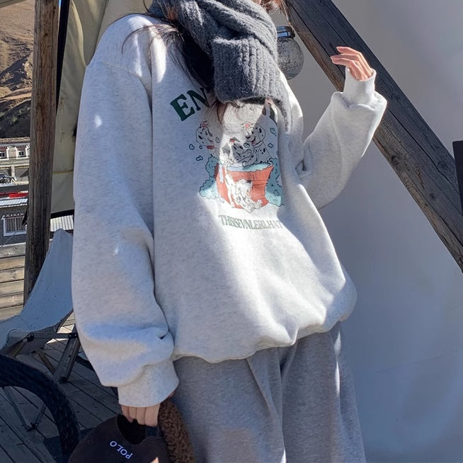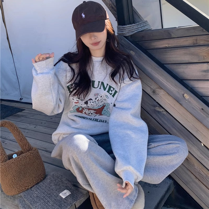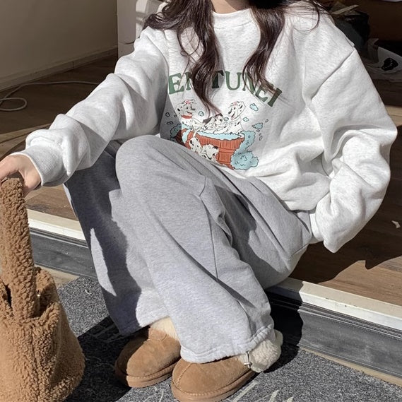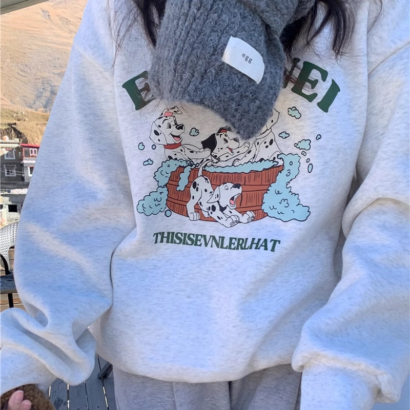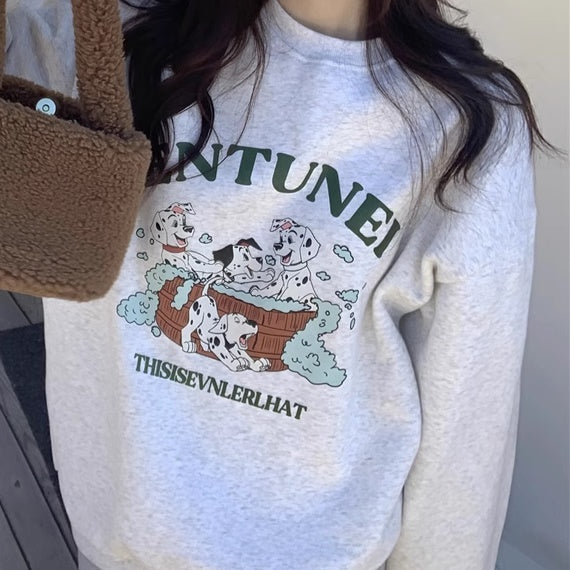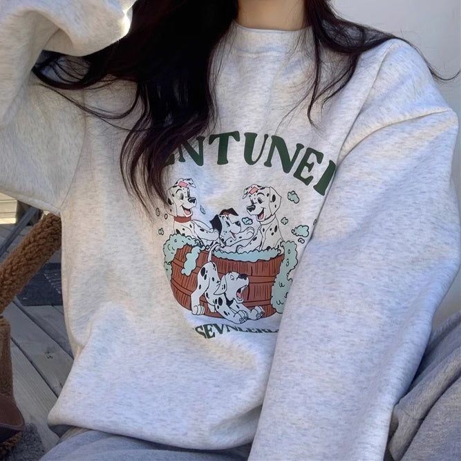 スウェットトレーナー レディース 韓国 ファッション アニマル ダルメシアン 犬 アニメ キャラクタートップス