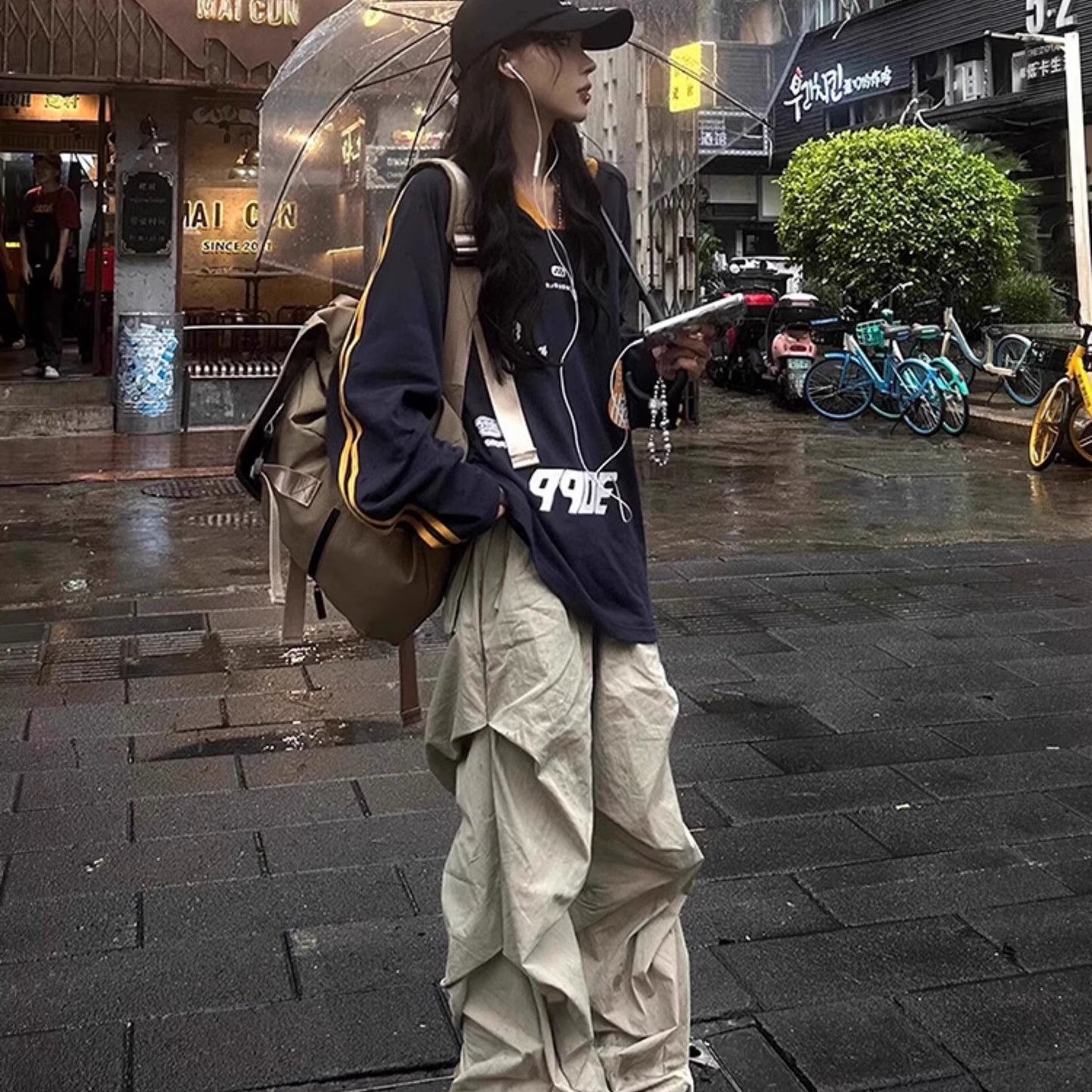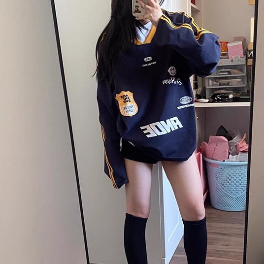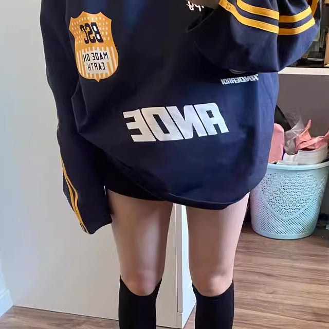 ライン ロングTシャツ レディース 韓国 ファッション ロンT ゲームシャツ ロゴプリント スポーティ ストリート トップス