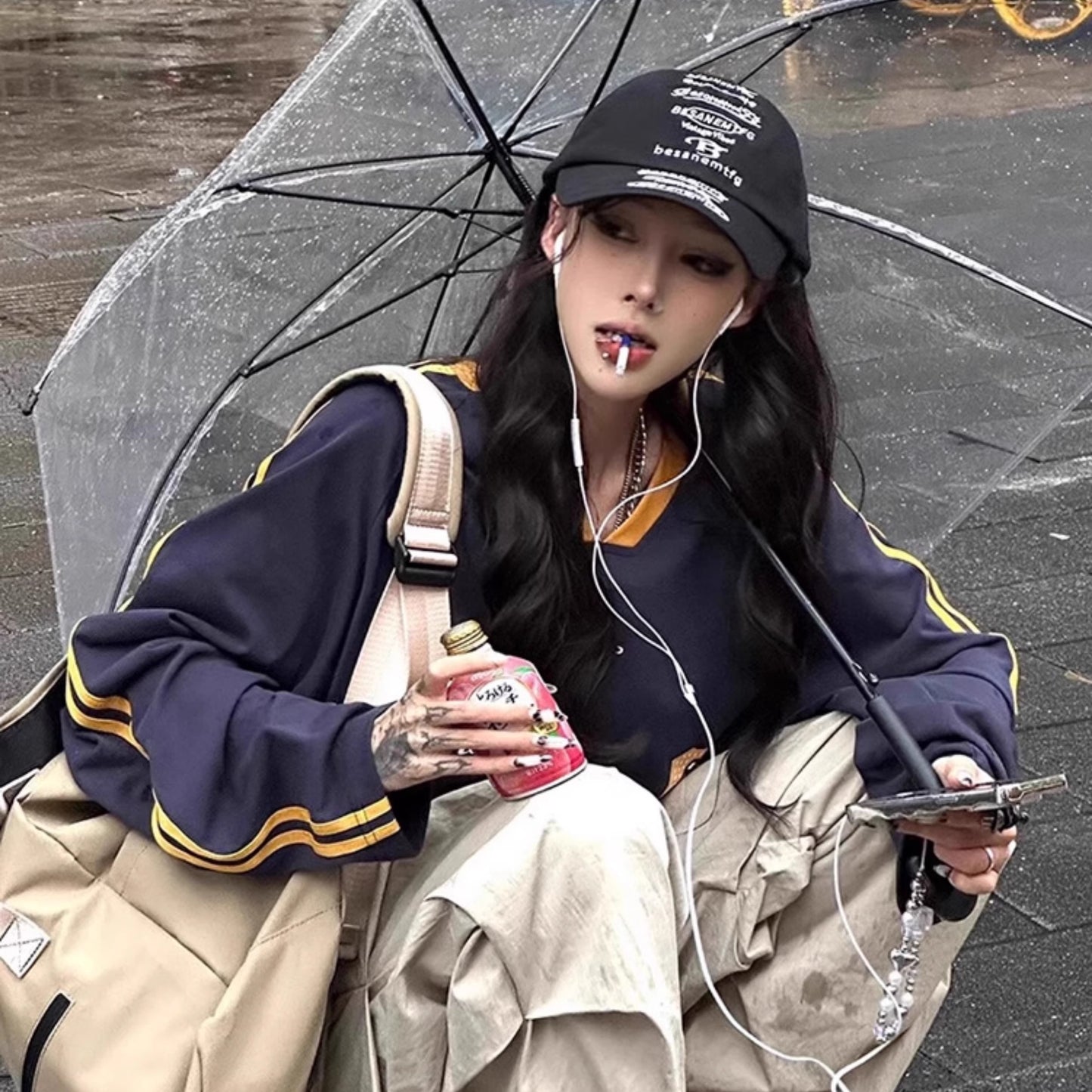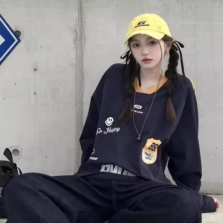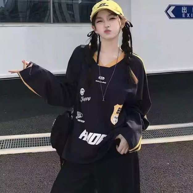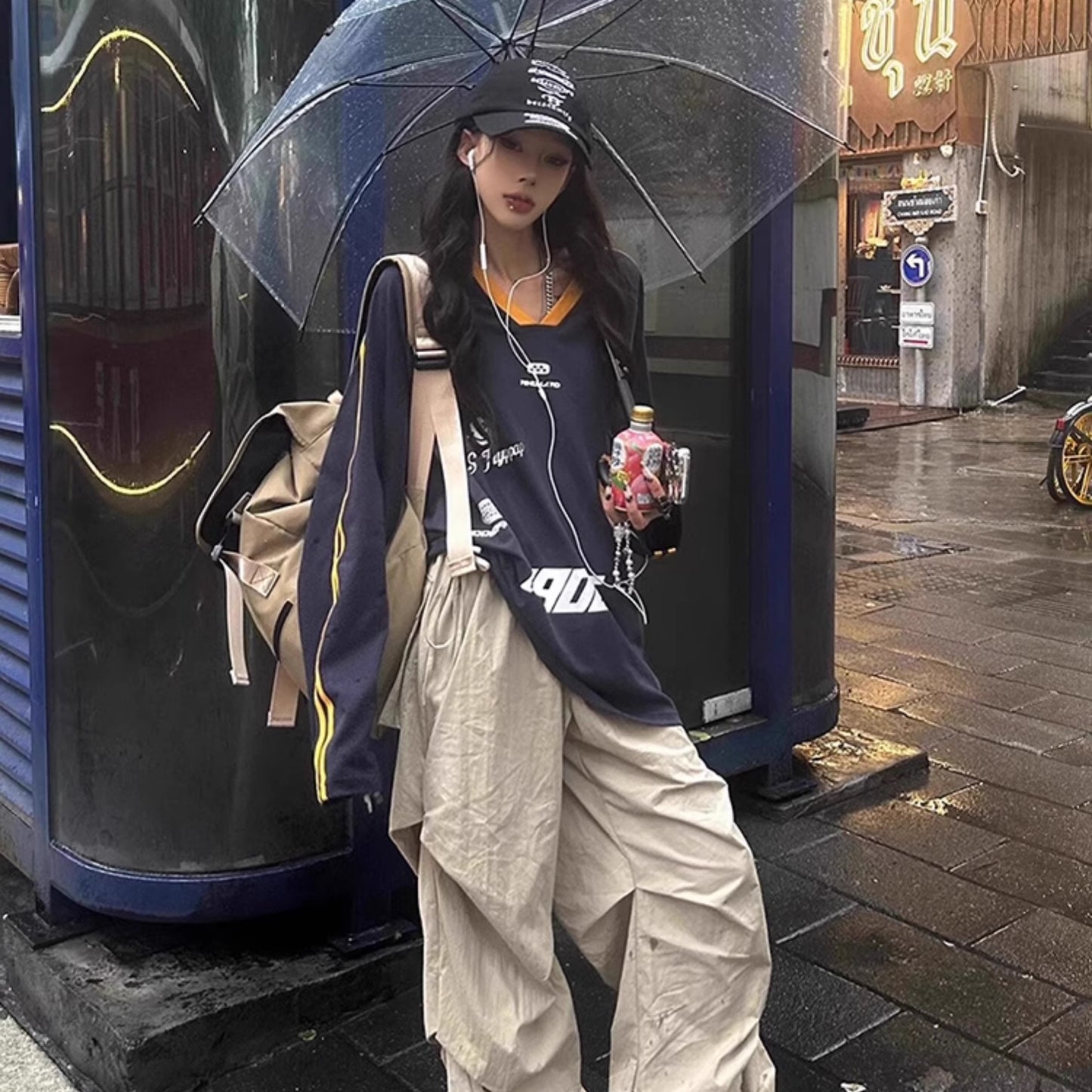 Tシャツ 長そで レディース 韓国 ファッション ロンT ゲームシャツ ロゴプリント サイドライン コントラスト メンズライク