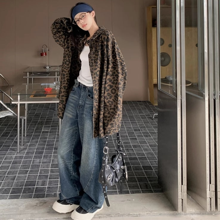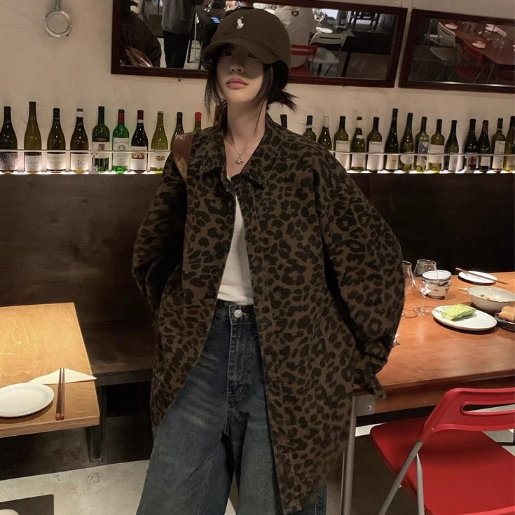 ヒョウ柄 オーバーサイズ シャツジャケット レディース 韓国 ファッション レオパード ビッグ ジャケット