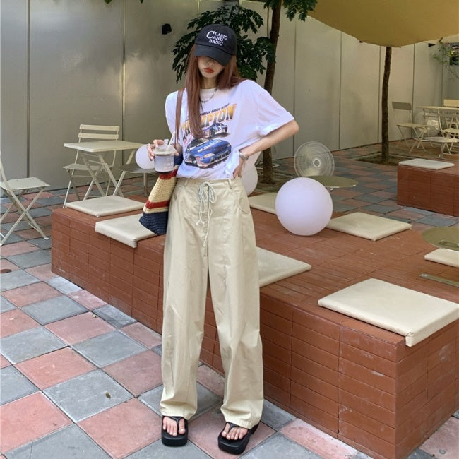 ワイドパンツ レディース 韓国 イージーパンツ 夏服 紐パン シンプル オーバーサイズ パンツ