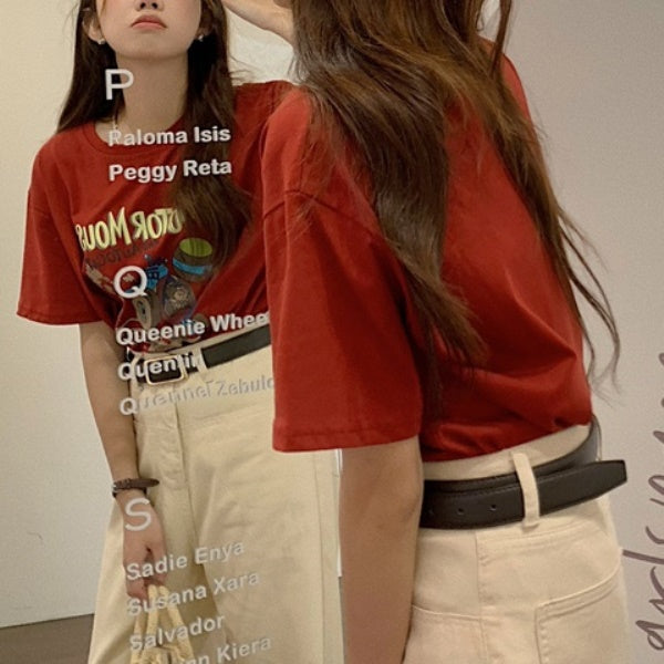 Tシャツ 半袖 カラフル レディース 韓国 ファッション ロゴ アメコミプリント レトロ カジュアル 夏トップス オーバーサイズ