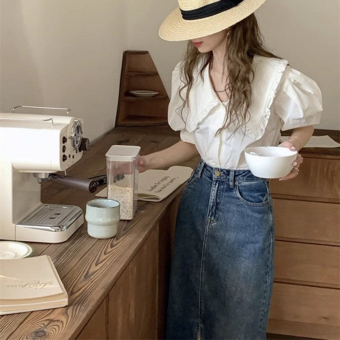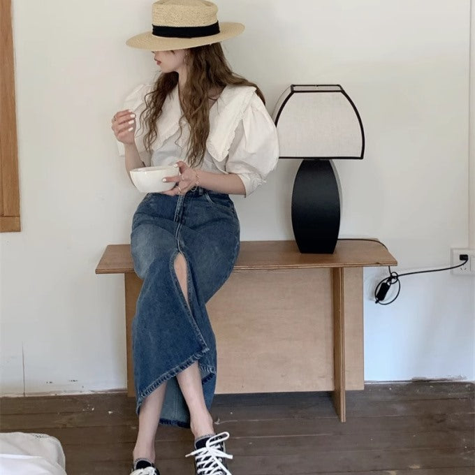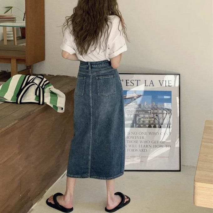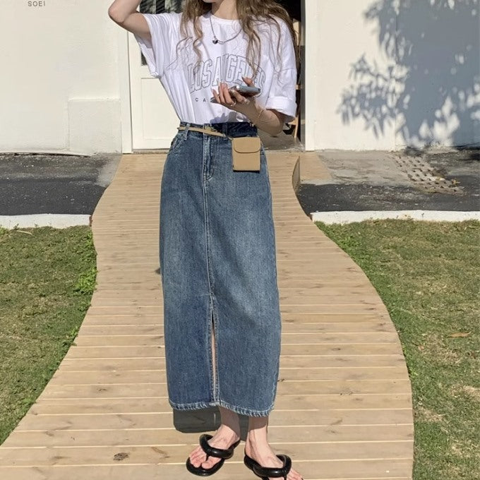 デニム ロングタイト スカート レディース 韓国 ファッション ブルーデニム 夏 スカート フロントスリット デニムスカート