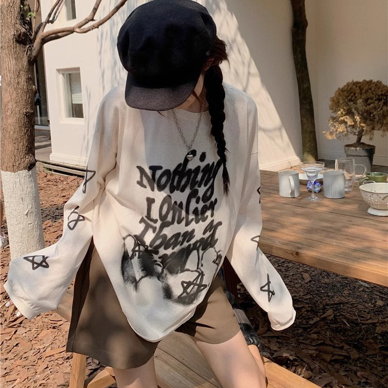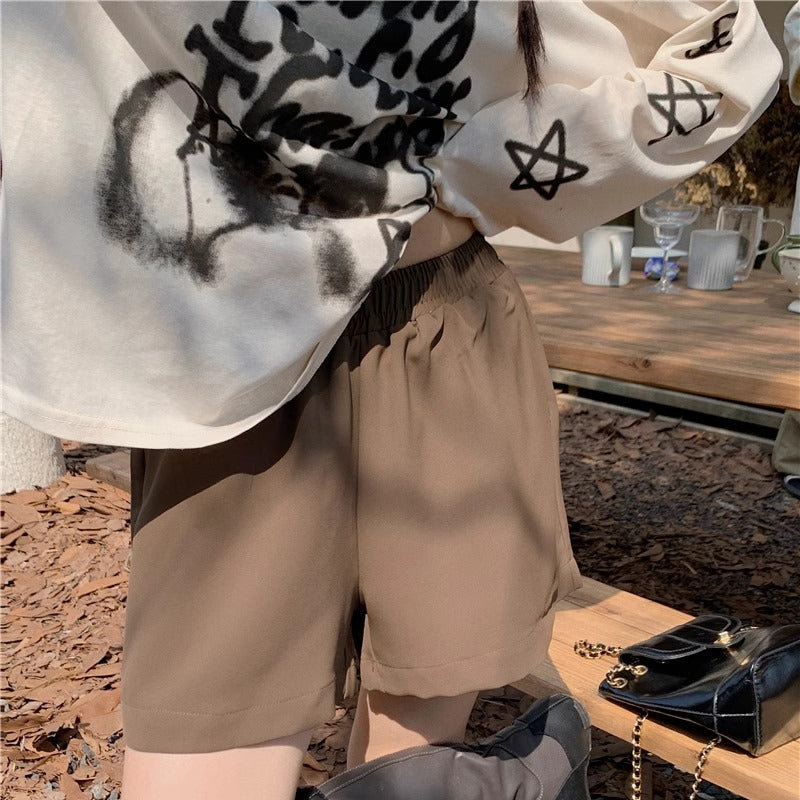 グラフィック ロングTシャツ セットアップ レディース 韓国 ファッション Tシャツ ショートパンツ コーディネートセット 星 スター 長袖 ロンT メッセージロゴ フレアパンツ ハーフパンツ