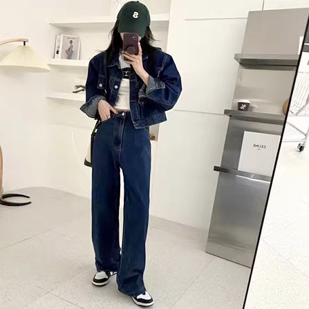 デニム セットアップ レディース デニムジャケット ワイドパンツ 上下セット 韓国 ファッション 秋