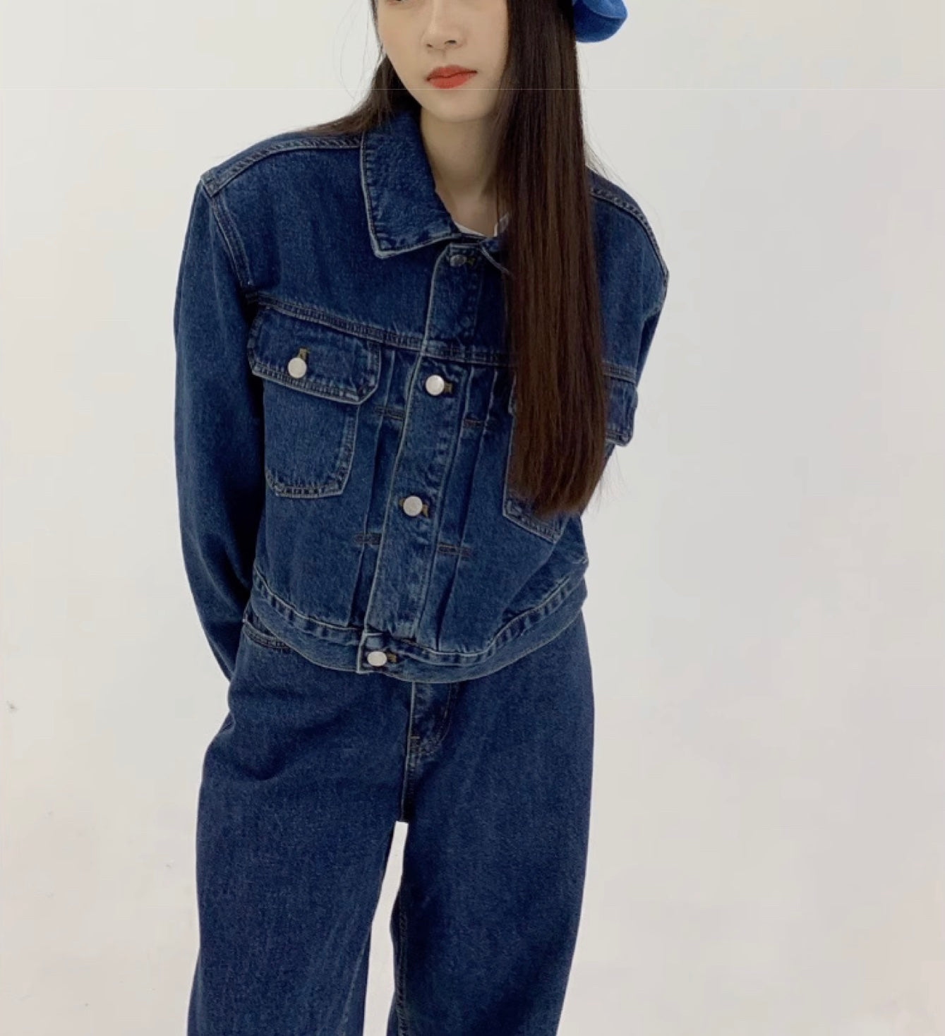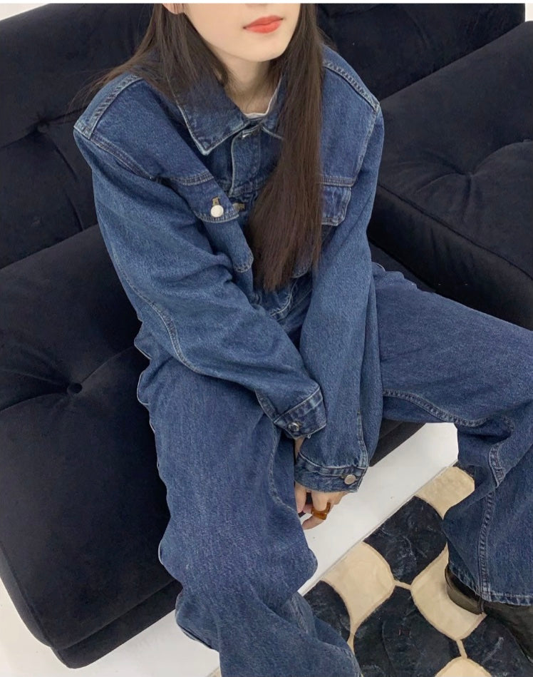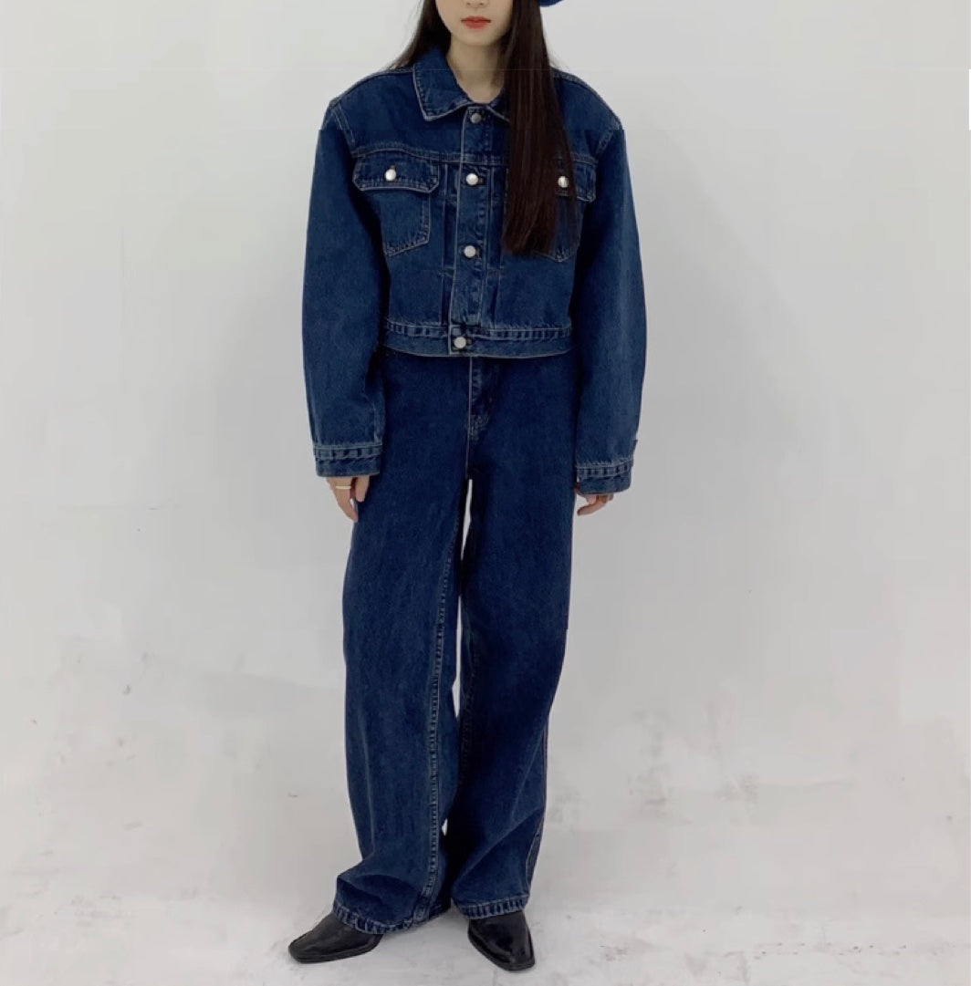 ワンウォッシュ加工 ネイビーブルー デニム上下セット
