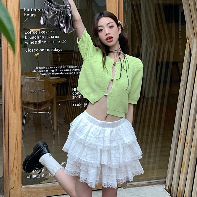 クロップド トップス レディース 韓国 ファッション サマーニット カーディガン ボレロ 肌見せ カットソー 夏服 半袖 ガーリー ヘルシー