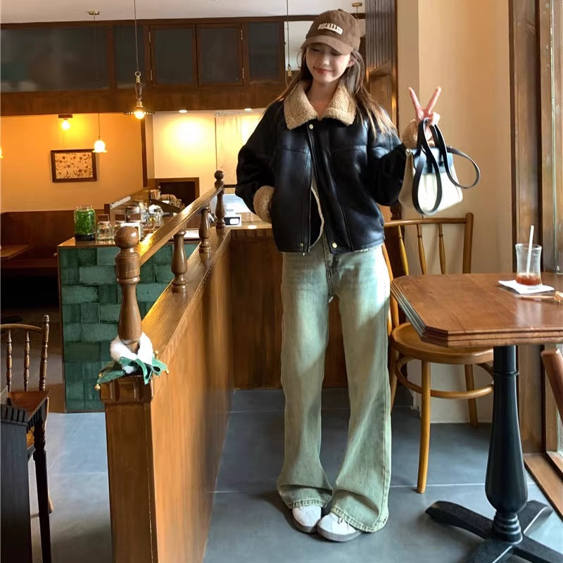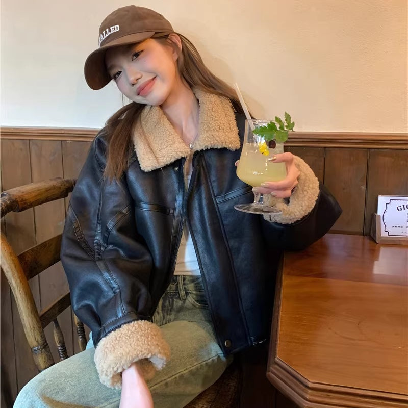 フェイクレザー ジャケット レディース 韓国 ファッション エコレザー ボアジャケット