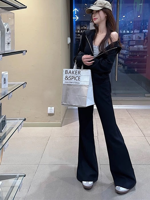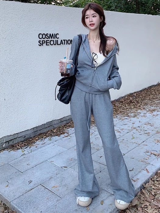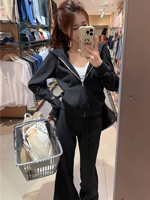 スウェット セットアップ レディース 韓国 ファッション ショート丈 ジップ パーカー フレアパンツ 2点セット