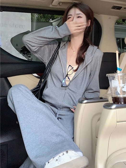 スウェット セットアップ レディース 韓国 ファッション ジップパーカーショート丈 ワイドパンツ 2点上下セット