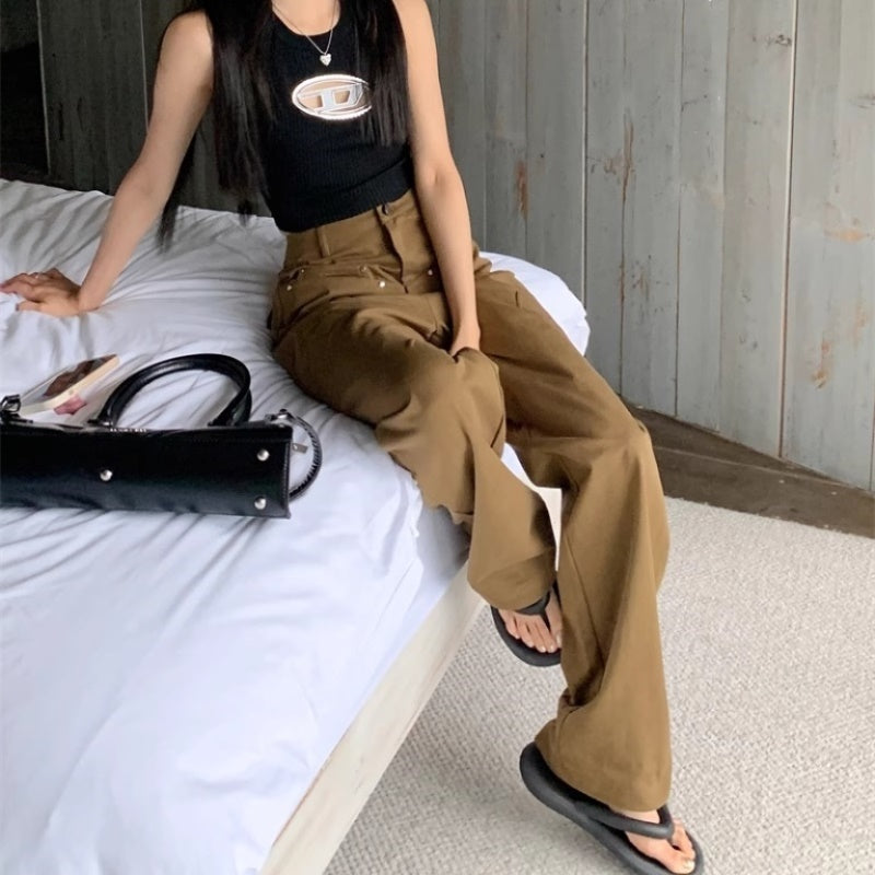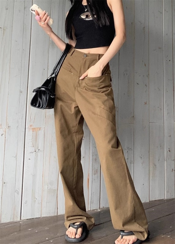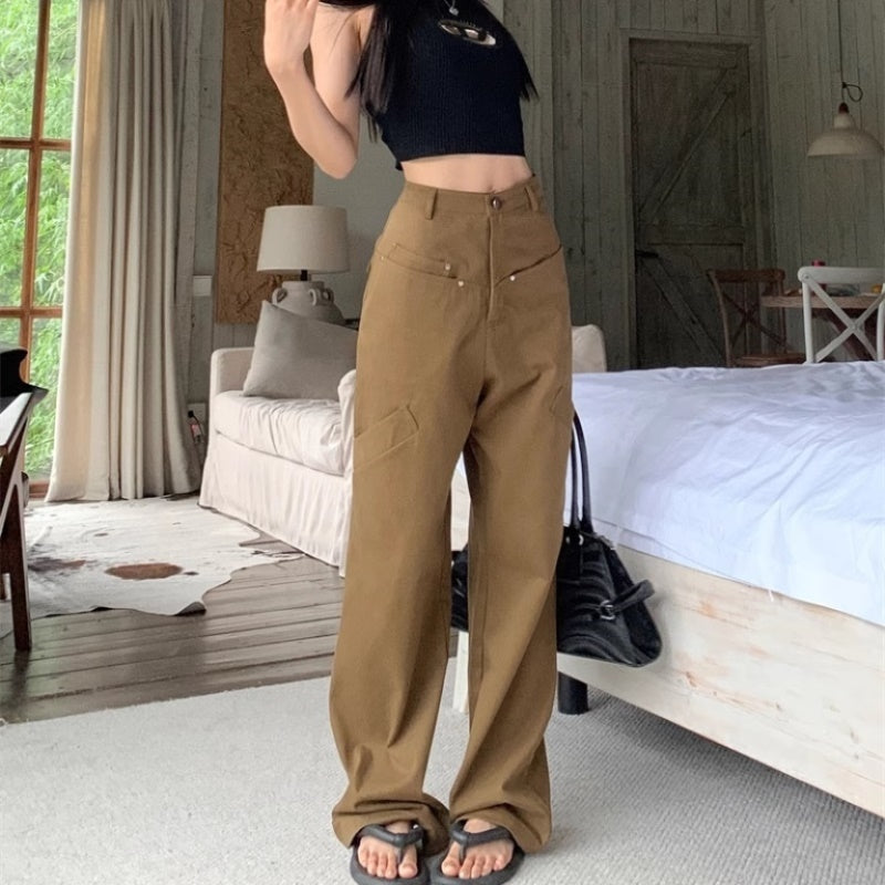 カードパンツ レディース 韓国 ファッション サイドポケット ワークパンツ カーキ ミリタリー スリムストレート ロングパンツ 秋冬 大人カジュアル