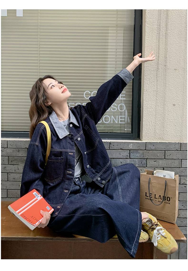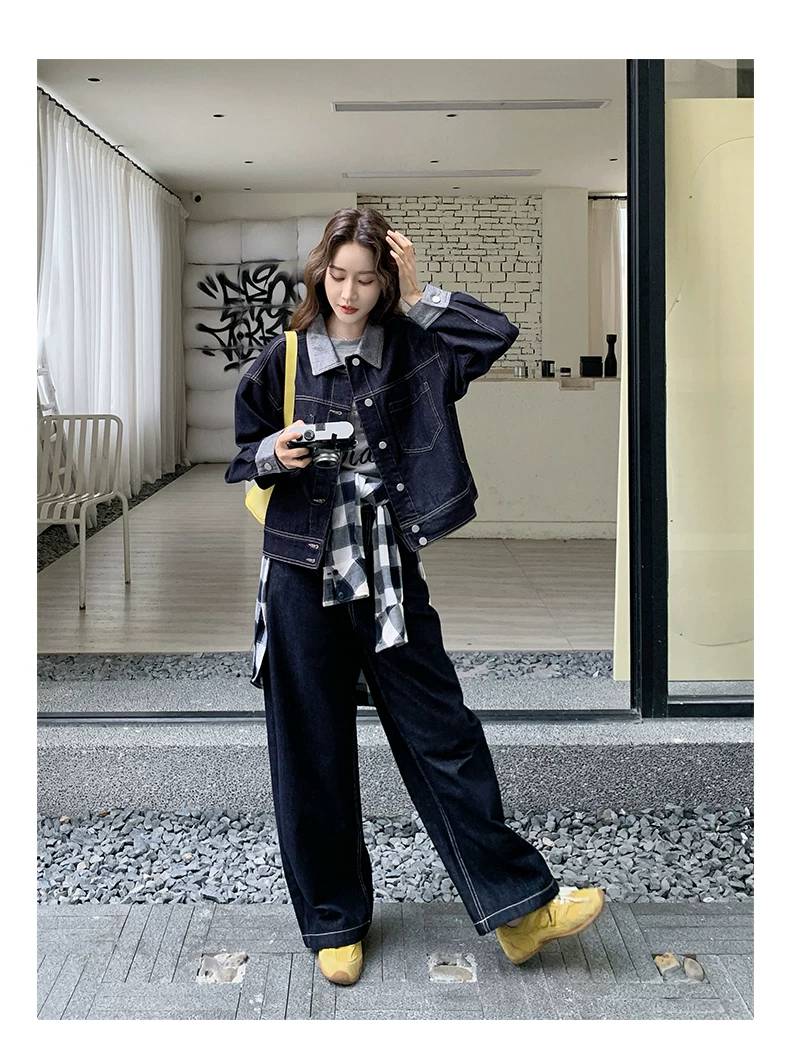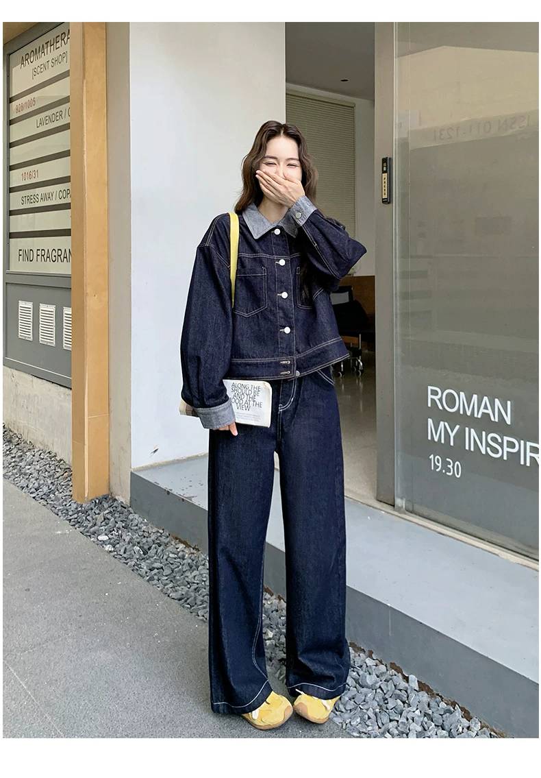 デニムセットアップレディース秋コーデジャケットワイドパンツ小柄ヴィンテージ向け上品美脚スタイリッシュ