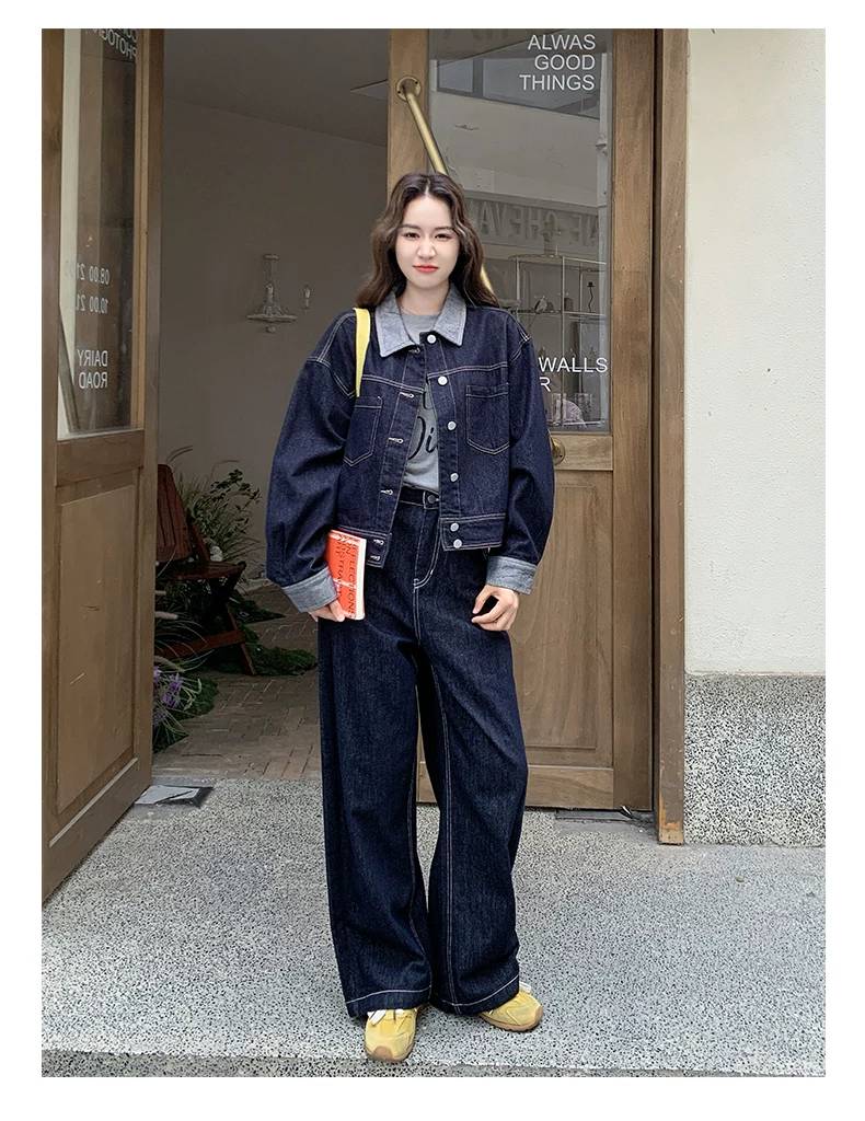 デニム セットアップ レディース 韓国 ファッション オーバーサイズ デニム ジャケット ワイドパンツ上下セット
