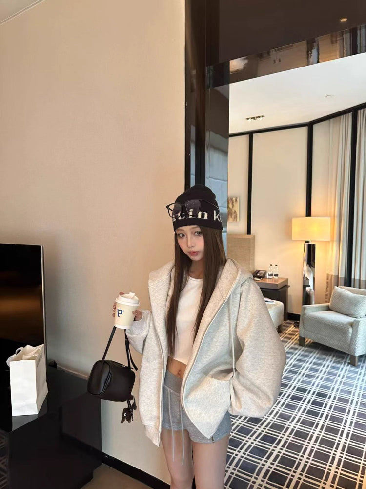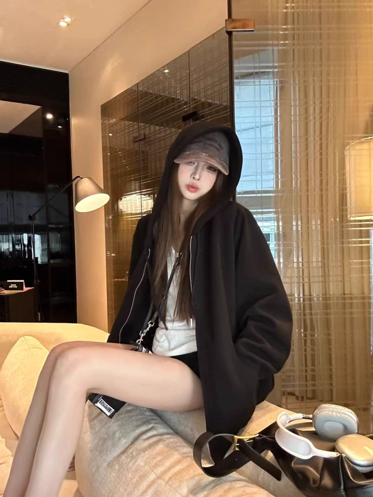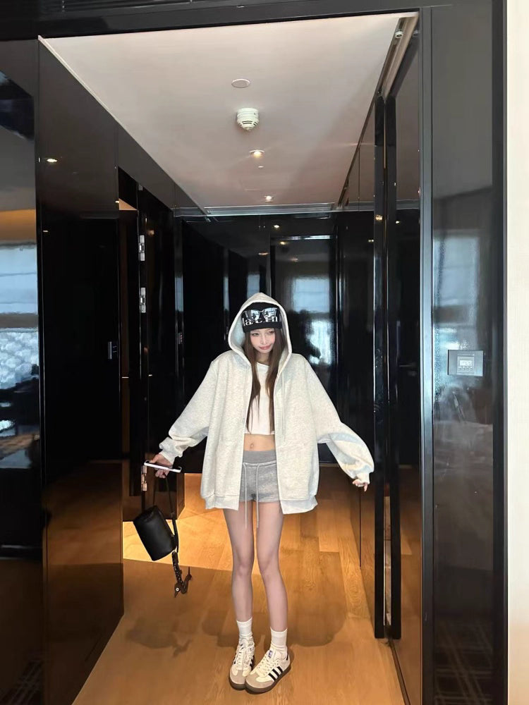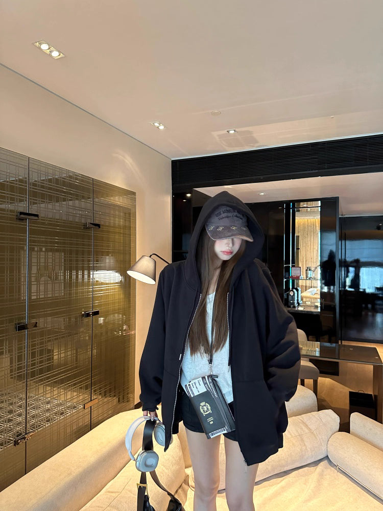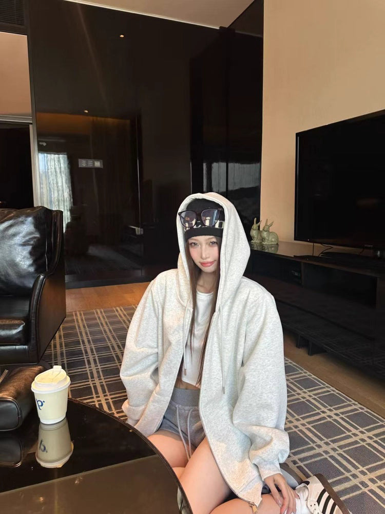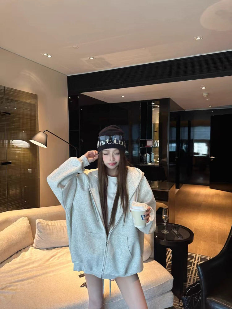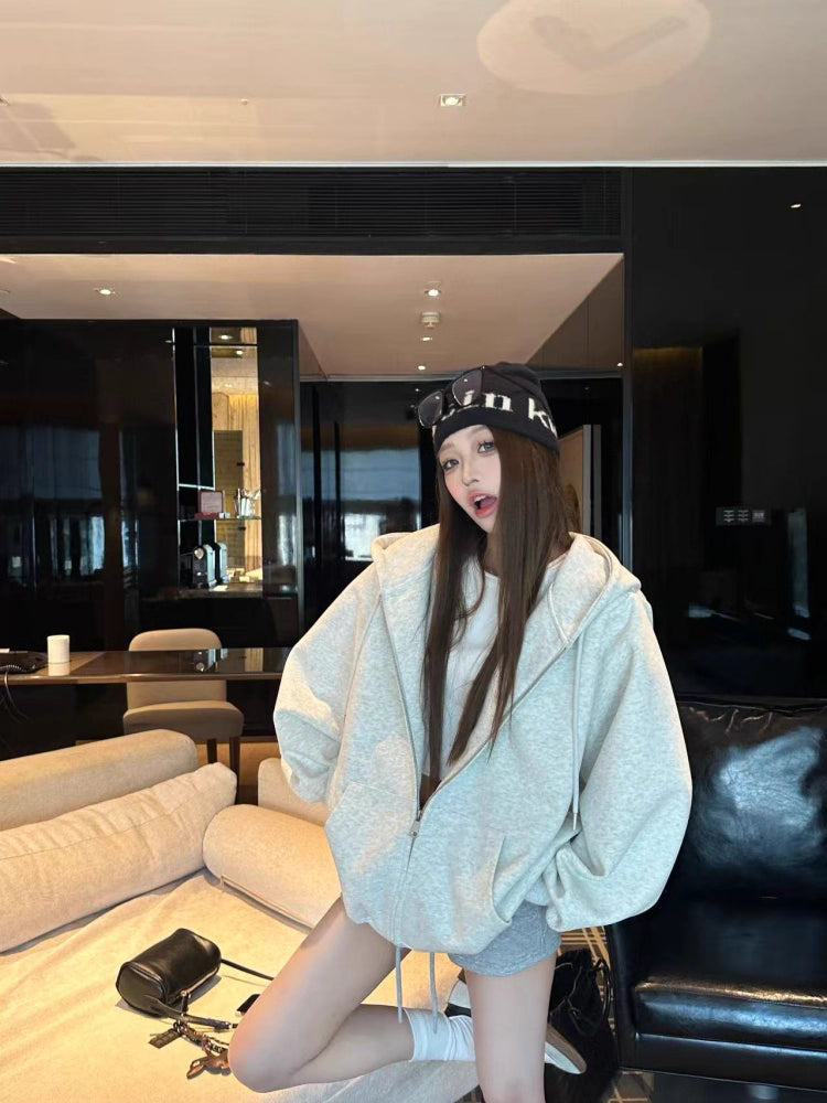 オーバーサイズ ジップ パーカー レディース 韓国 ファッション 定番 アメカジ ビッグシルエット フーディ 春