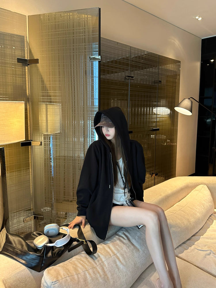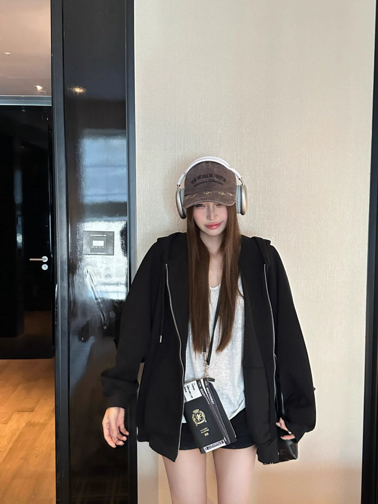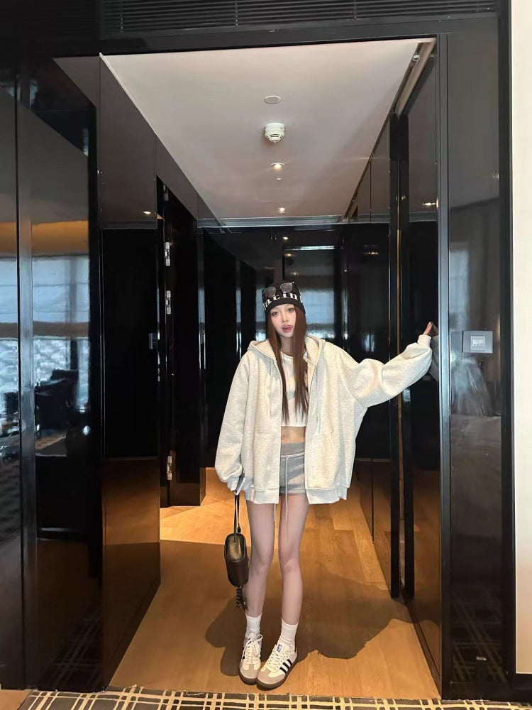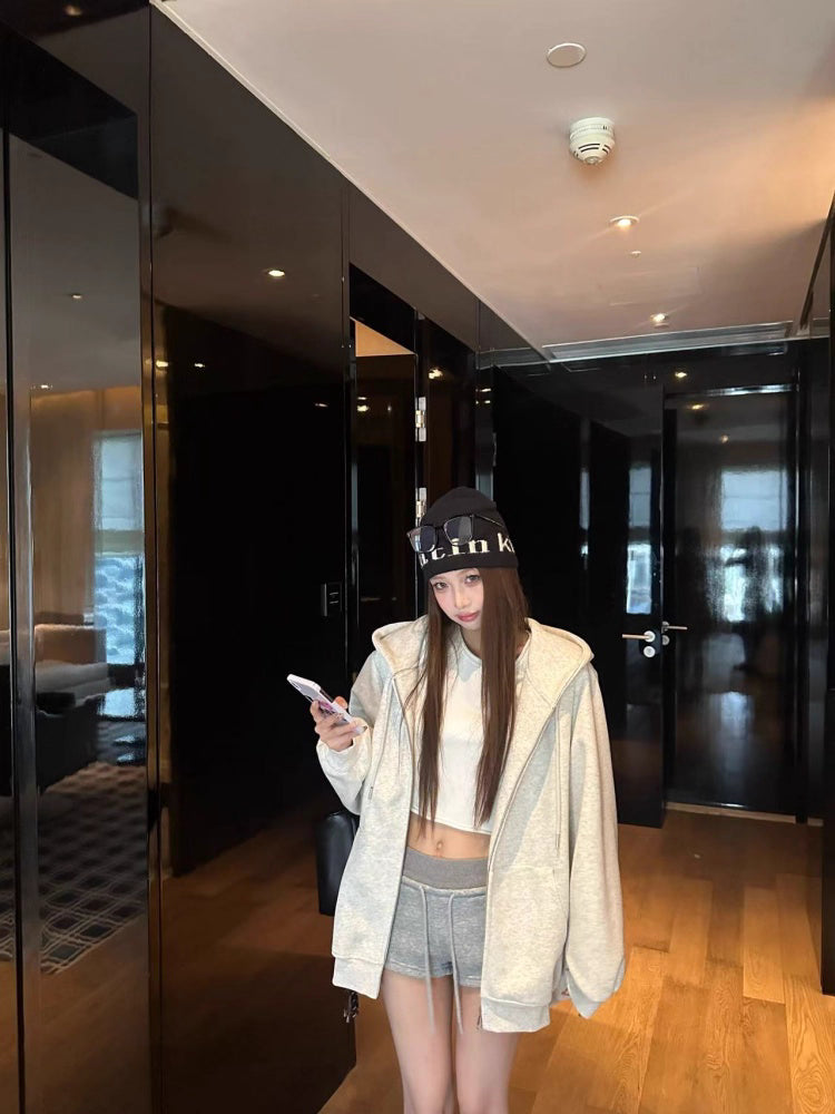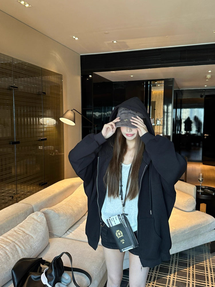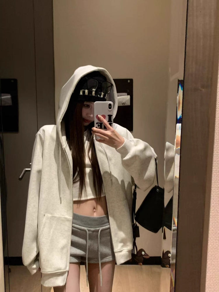 オーバーサイズ ジップ パーカー レディース 韓国 ファッション 定番 アメカジ ビッグシルエット フーディ 春