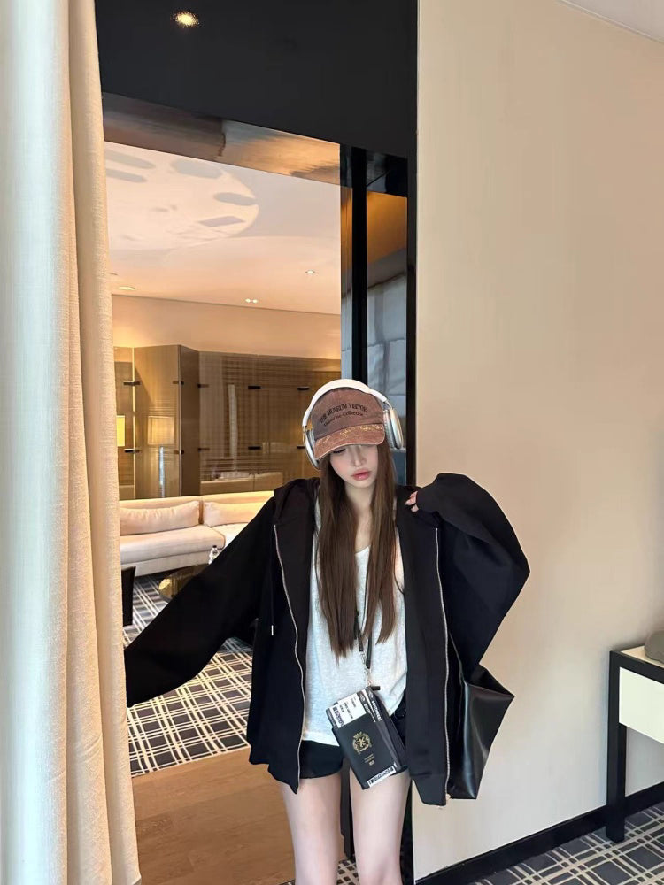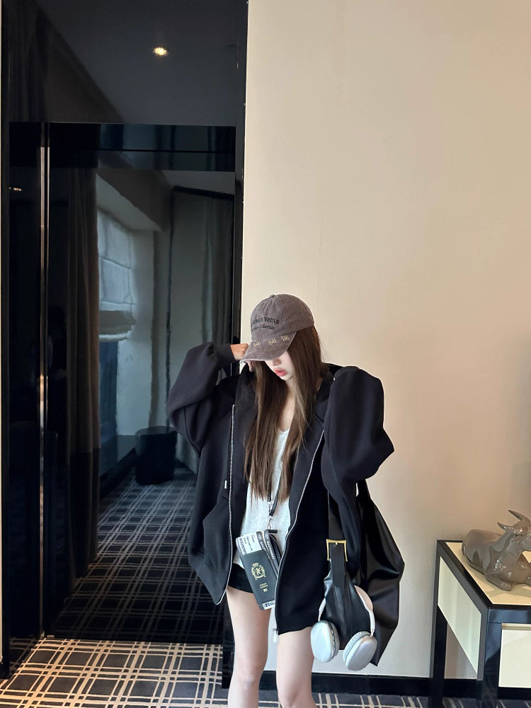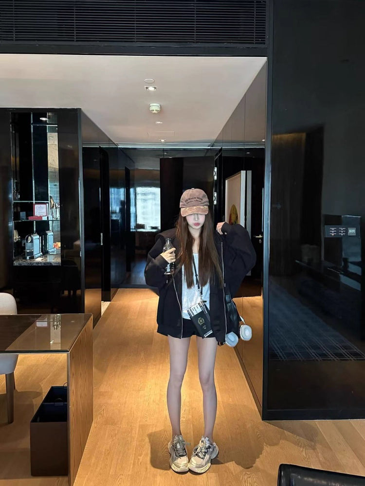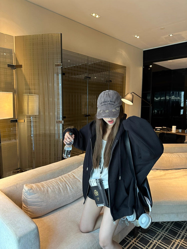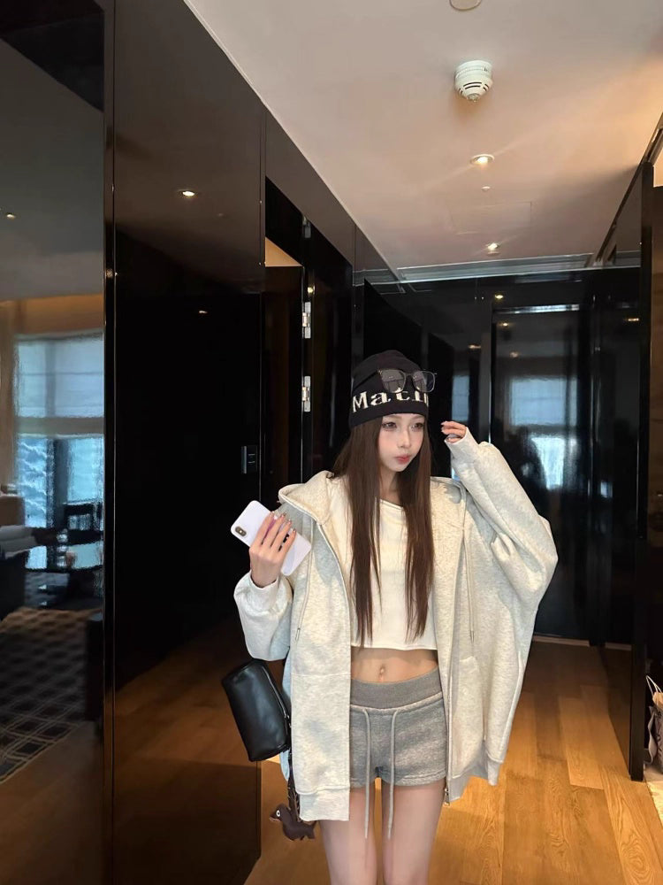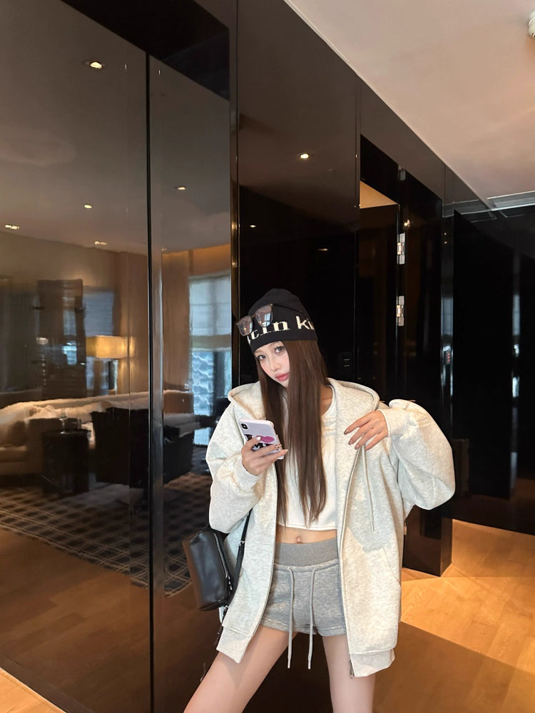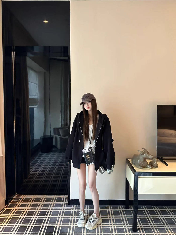 オーバーサイズ ジップ パーカー レディース 韓国 ファッション 定番 アメカジ ビッグシルエット フーディ 春