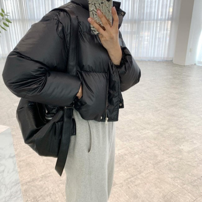 ダウンジャケット クロップド レディース 韓国 ファッション ショート丈 ボリュームアウター 黒 白 おしゃれ ベージュ ブラック